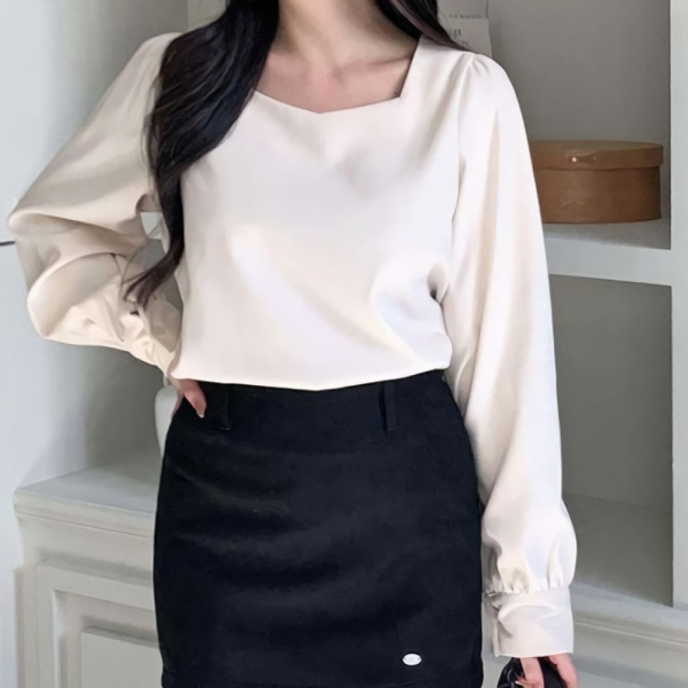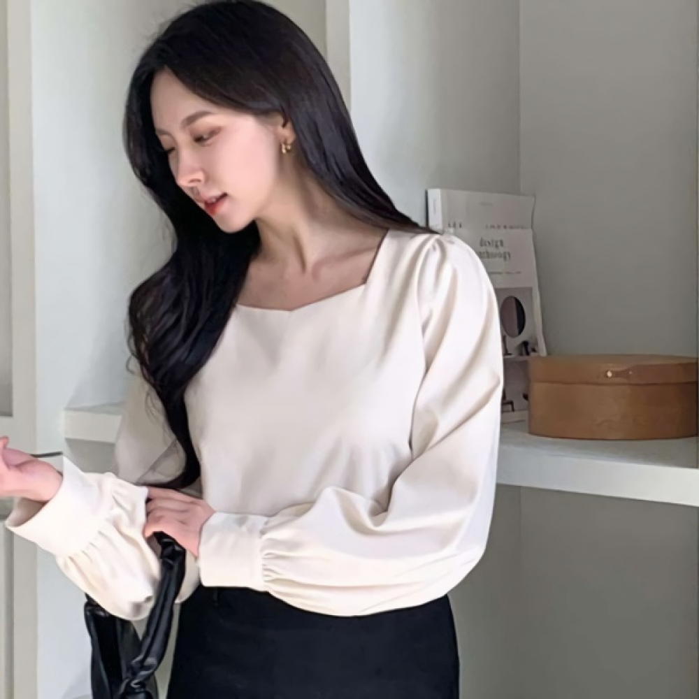 여성 겨울 페미닌 긴팔 스퀘어넥 블라우스