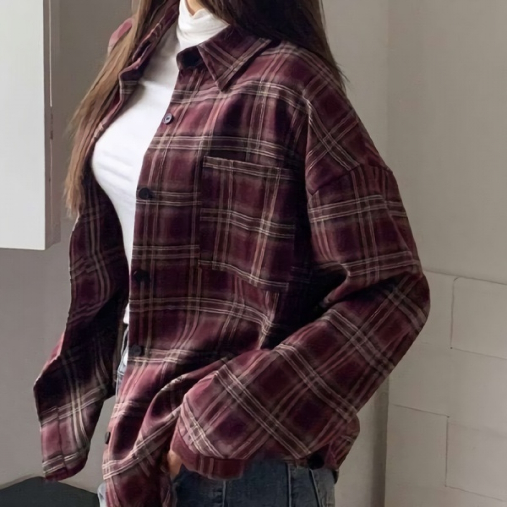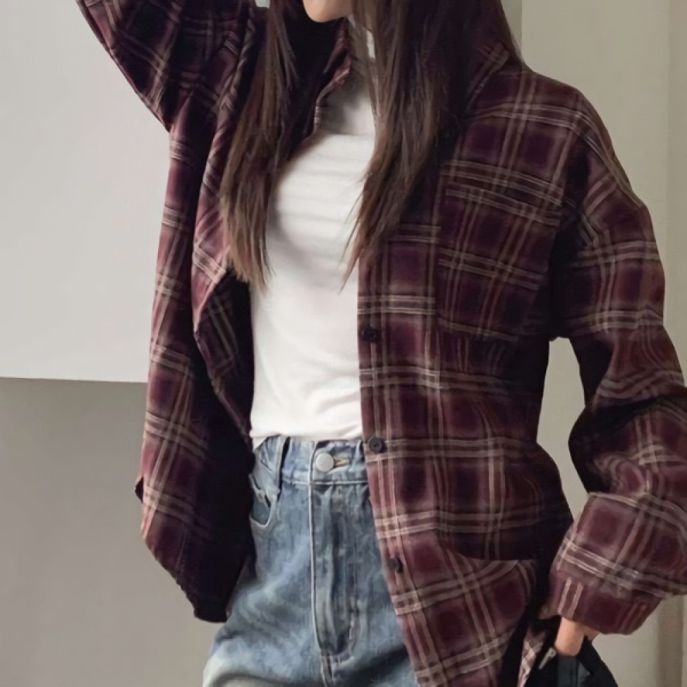 여성 원 포켓 도톰 루즈핏 체크 셔츠