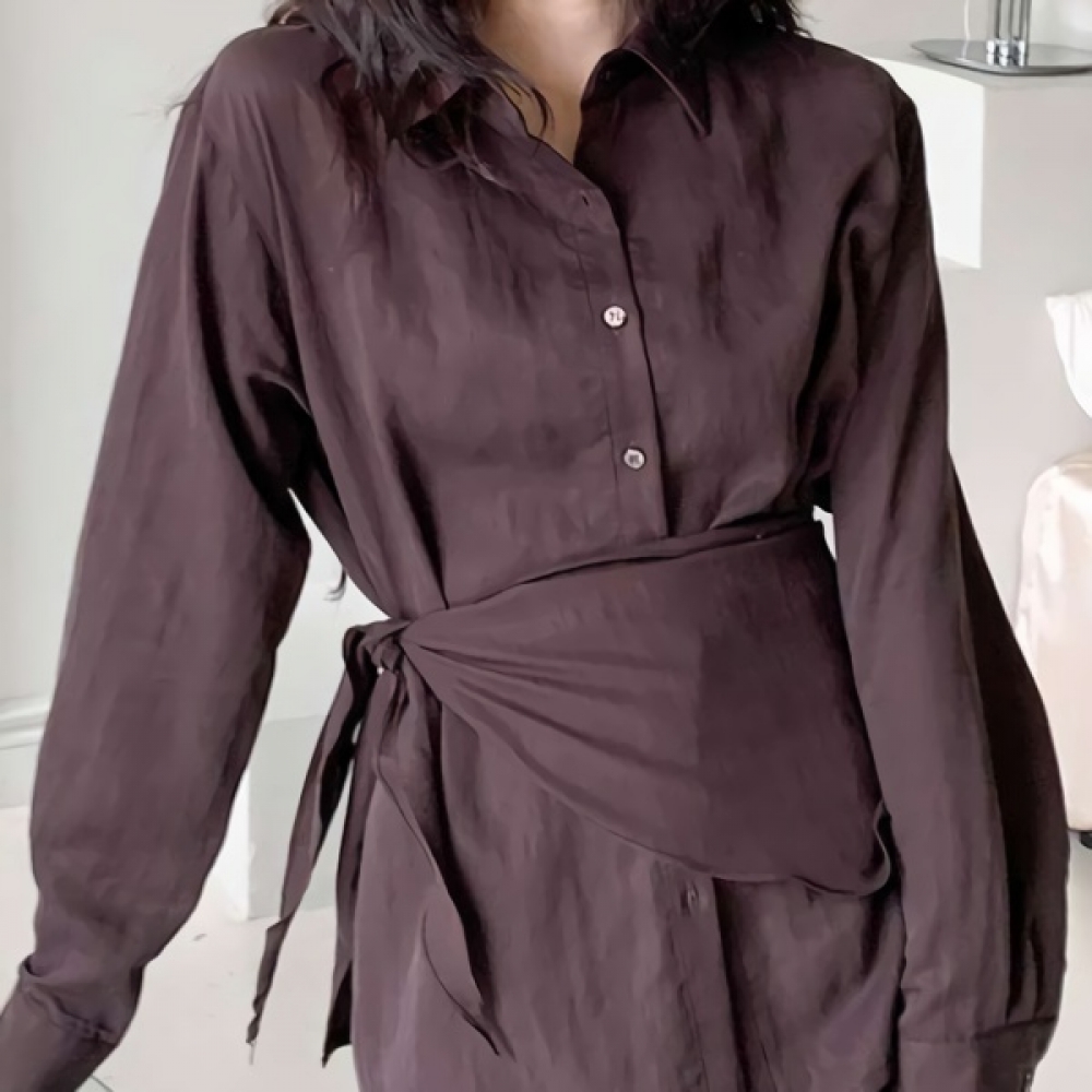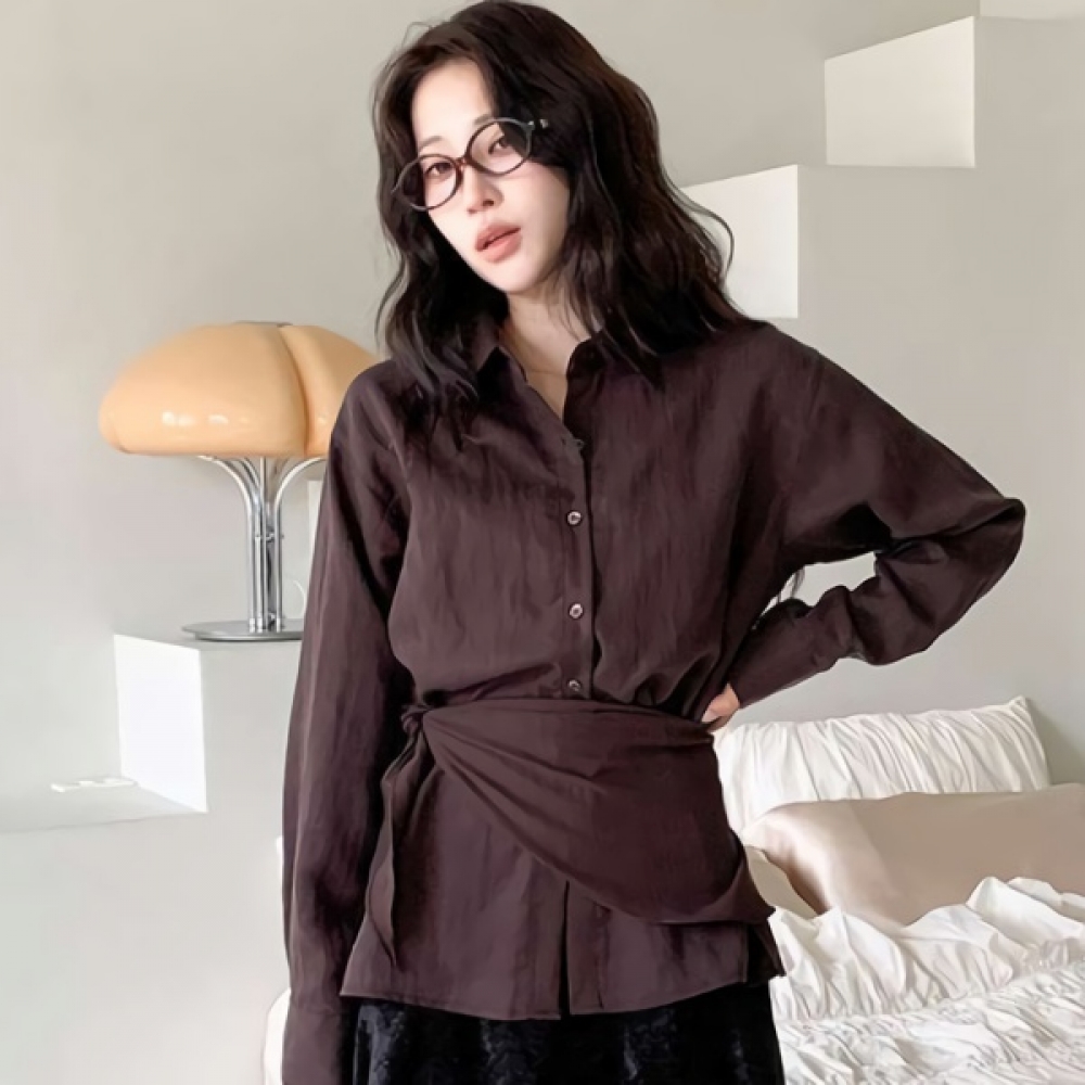 여성 텐셀 오버핏 블라우스 셔츠(스카프 SET)