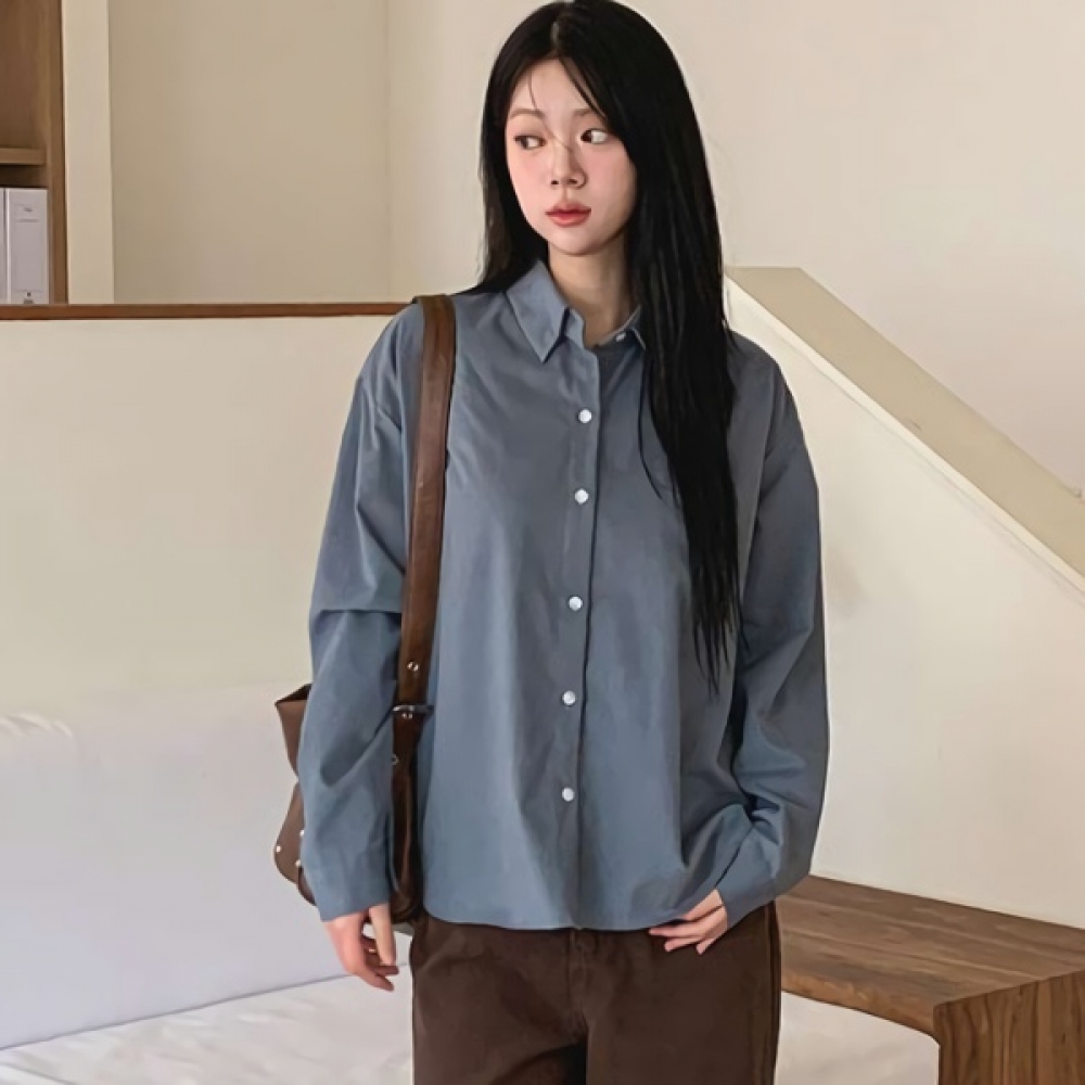 여성 겨울 데일리 피치 기모 오버핏 컬러 셔츠
