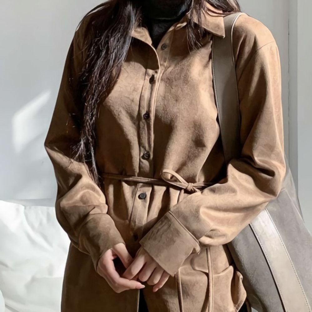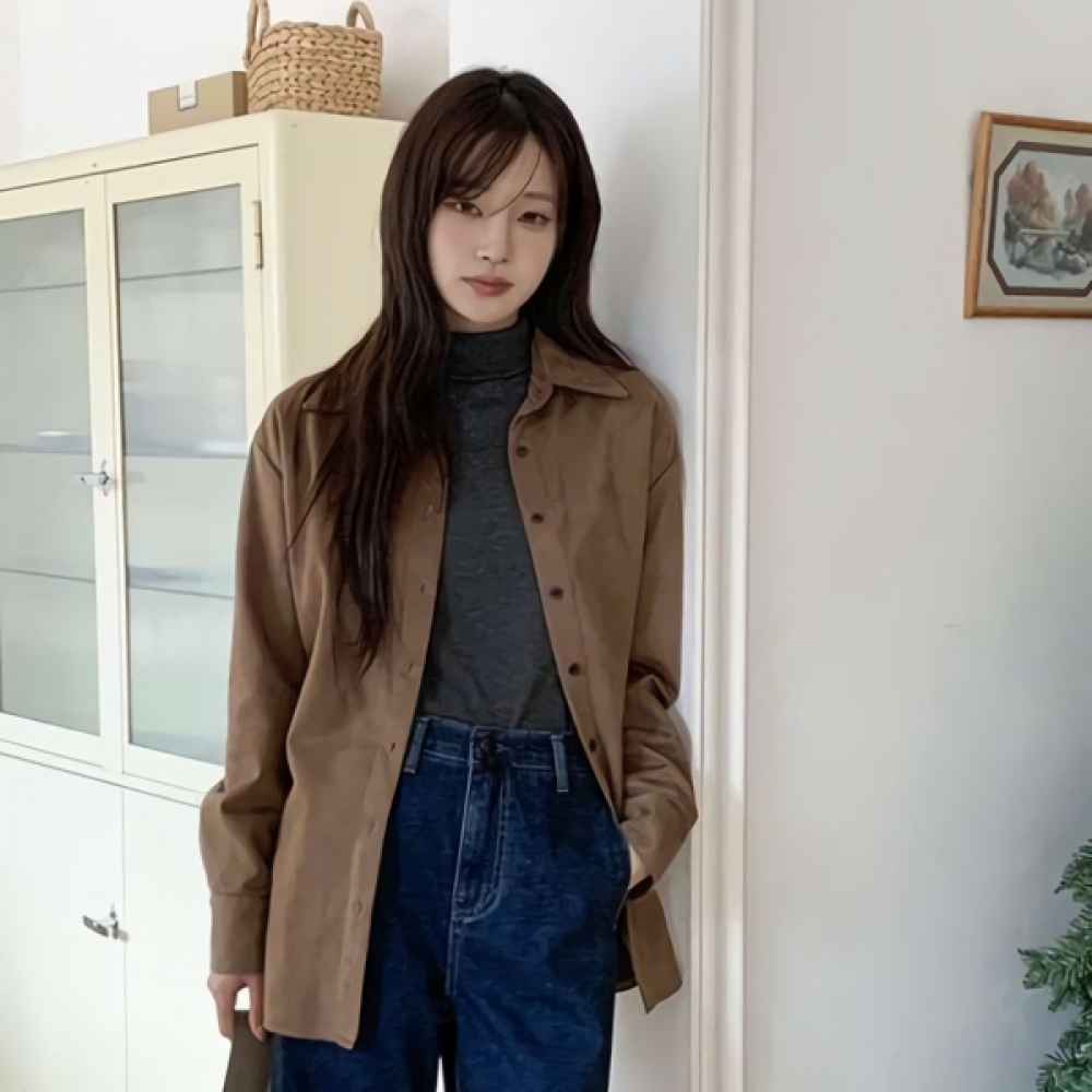 여성 겨울 오버핏 하이넥 스웨이드 셔츠
