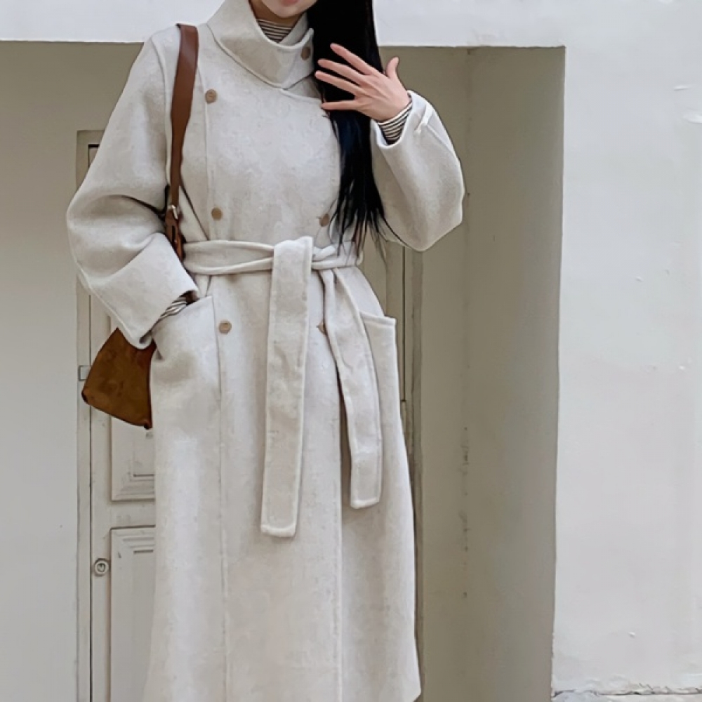 여성 핸드메이드 하이넥 더블 울 코트