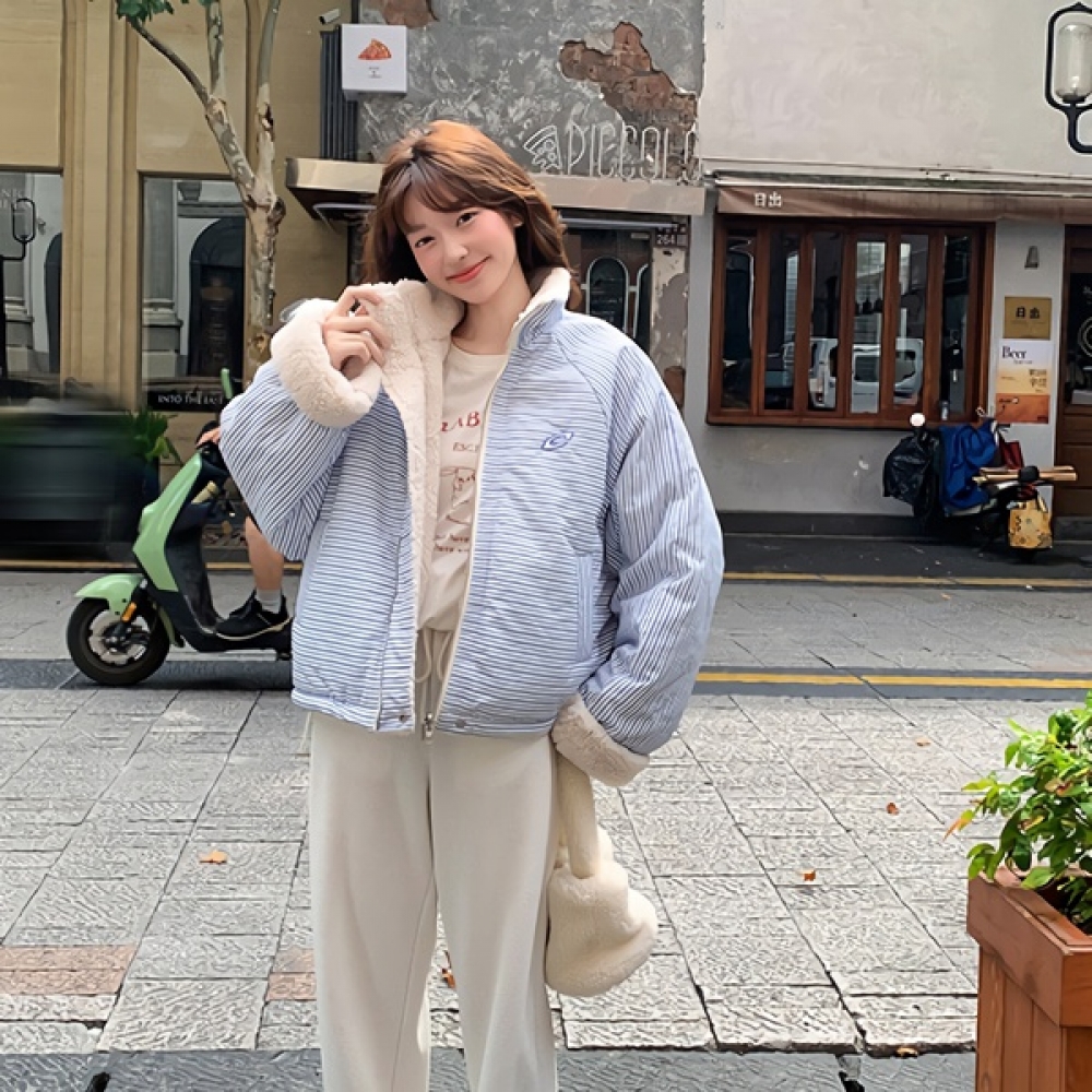 여성 겨울 양털 리버시블 패딩 점퍼