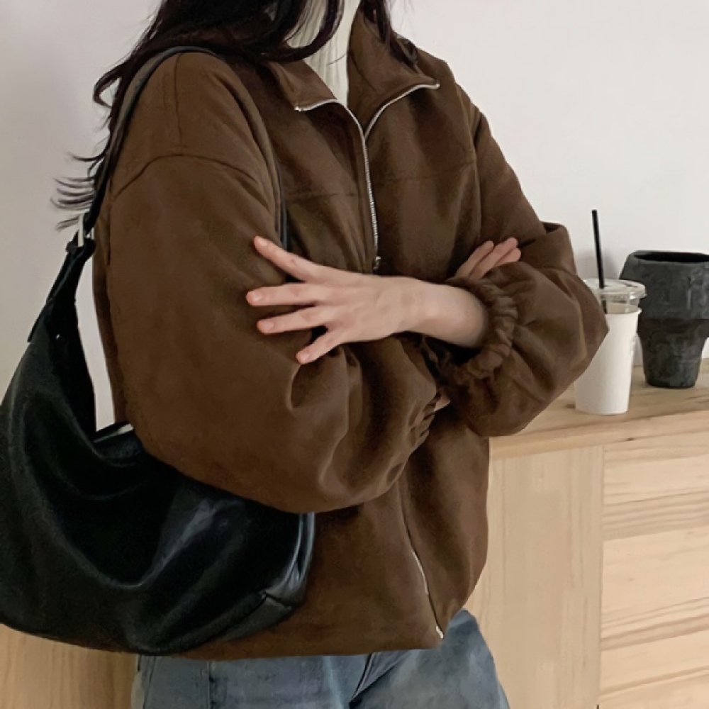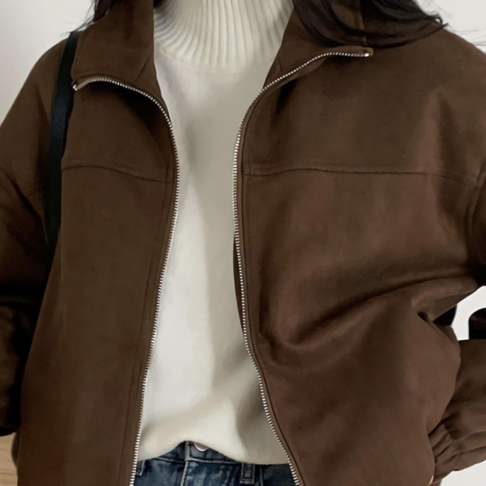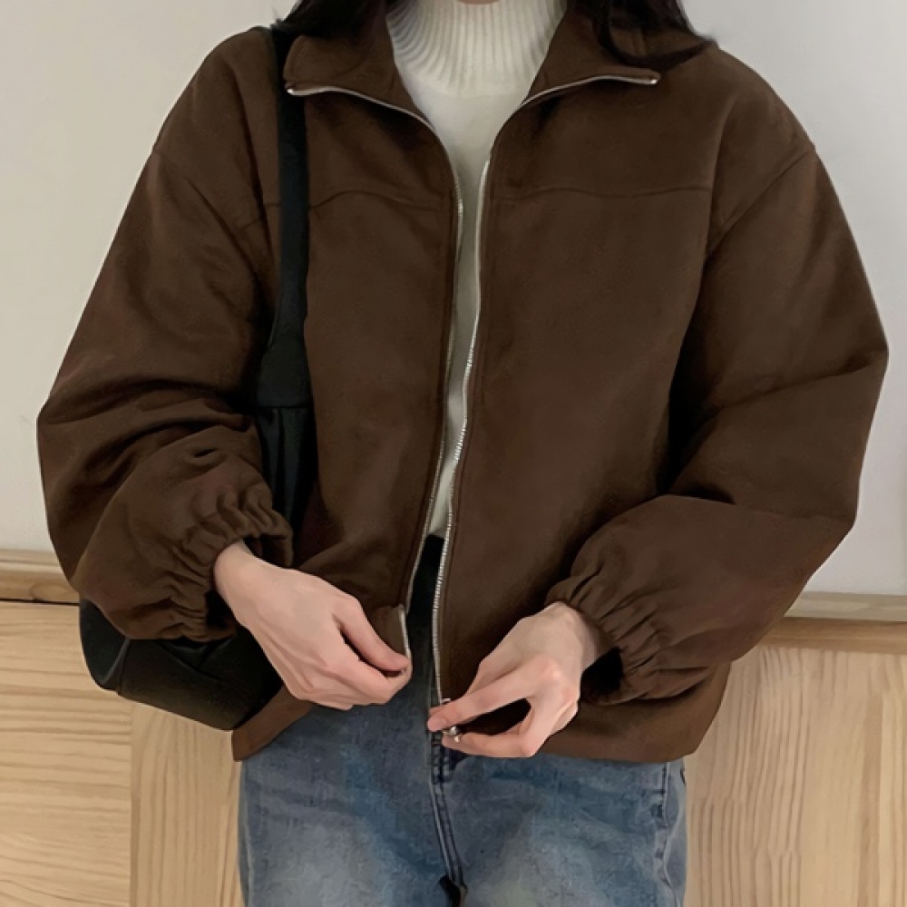 여성 겨울 데일리 누빔 스웨이드 집업 자켓