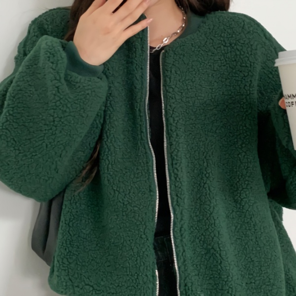 여성 겨울 배색 오버핏 덤블 집업 자켓