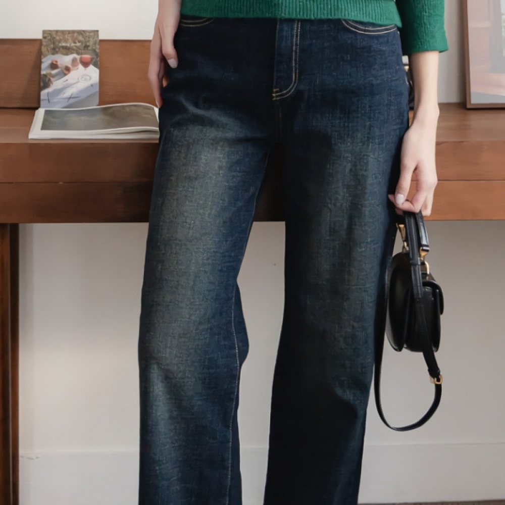 여성 논페이드 커브드 와이드 기모 데님 팬츠