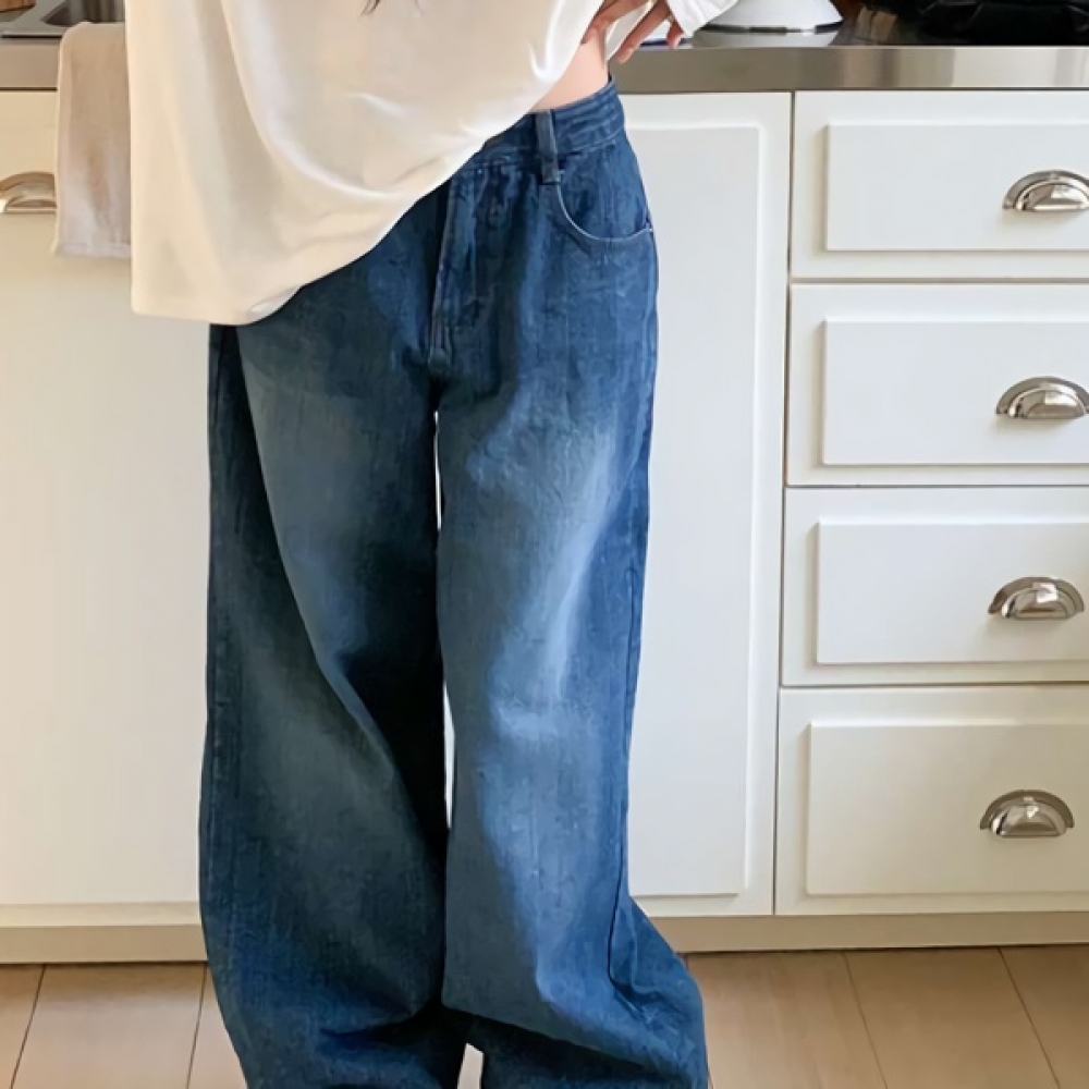여성 빈티지 워싱 피치기모 와이드 데님 팬츠