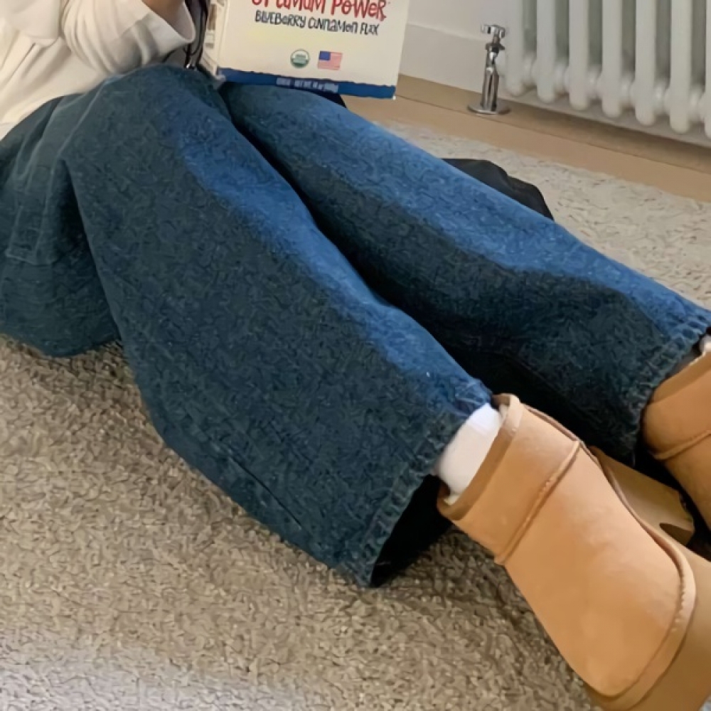 여성 논페이드 커브드 와이드 기모 데님 팬츠