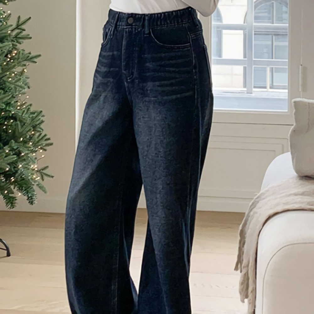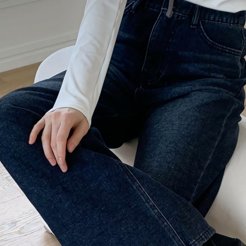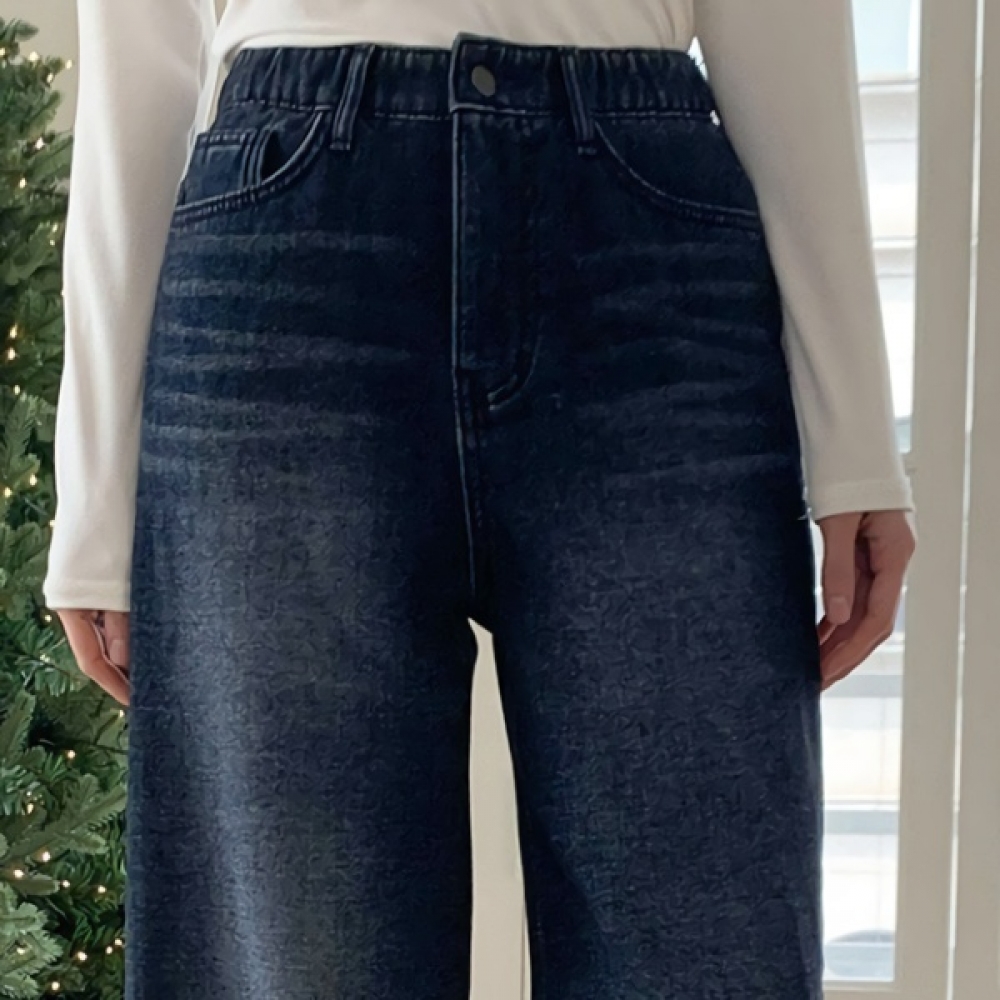 여성 논페이드 커브드 와이드 기모 데님 팬츠