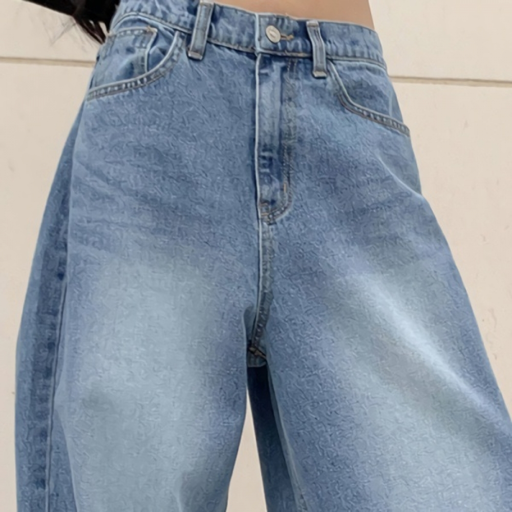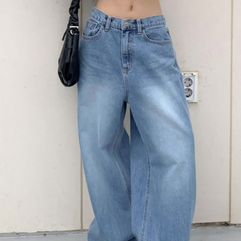 여성 논페이드 커브드 와이드 기모 데님 팬츠