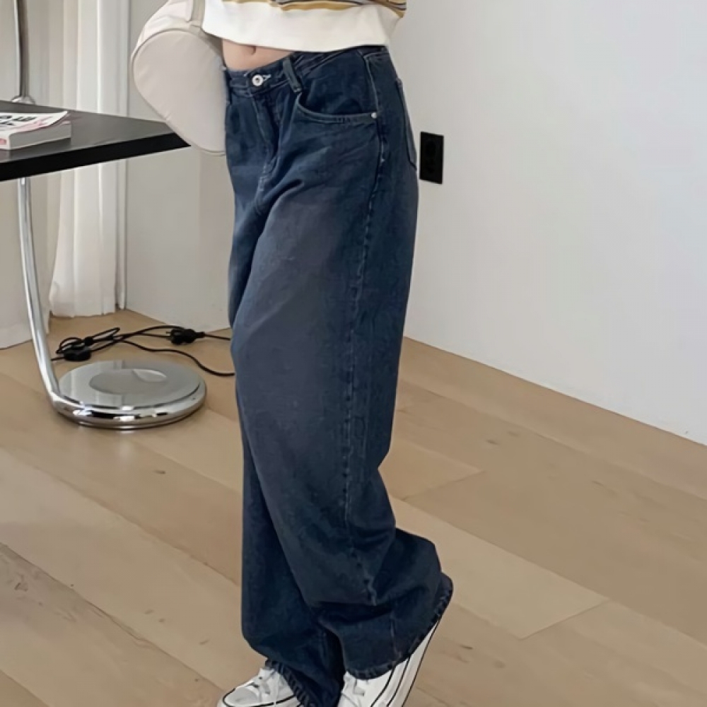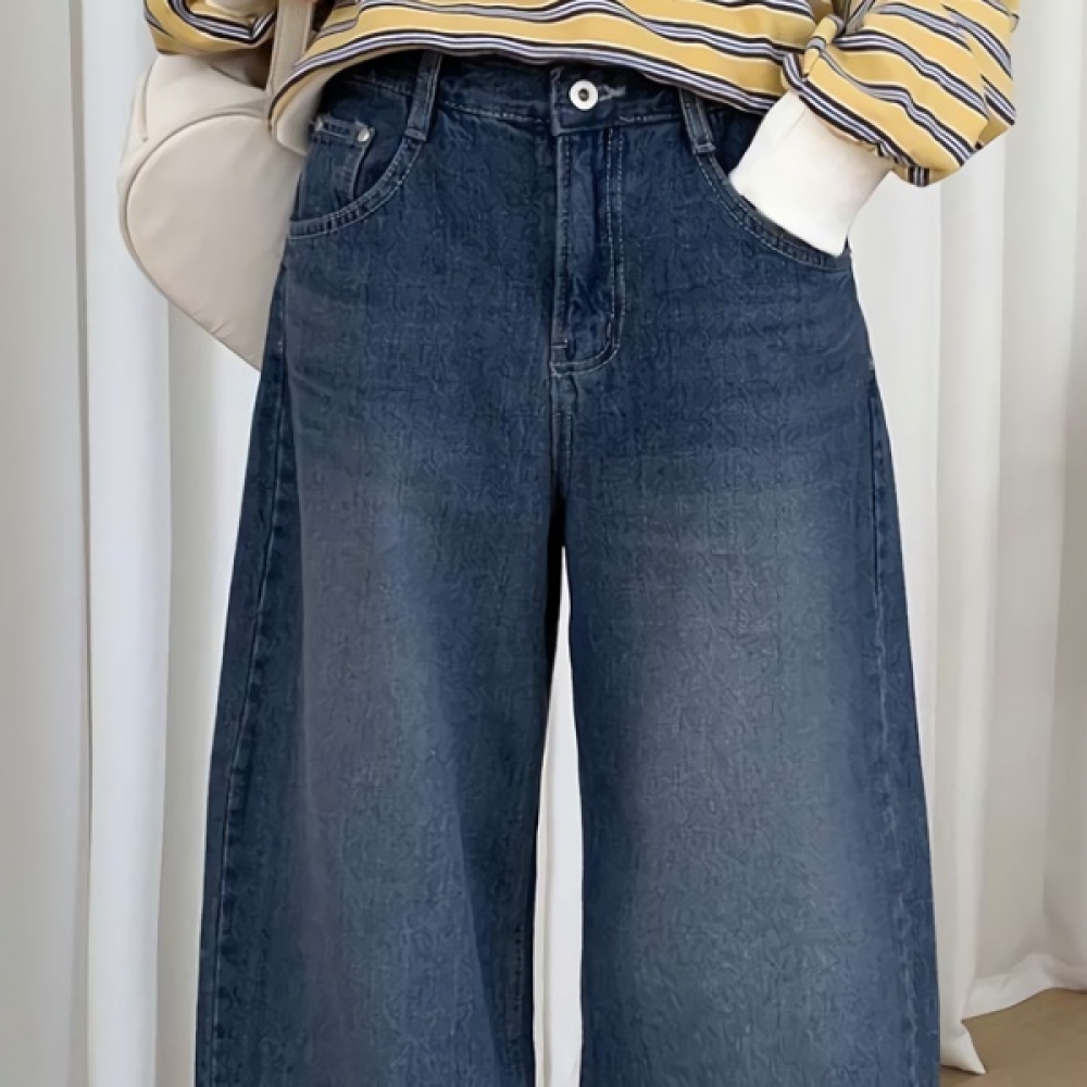 여성 논페이드 커브드 와이드 기모 데님 팬츠