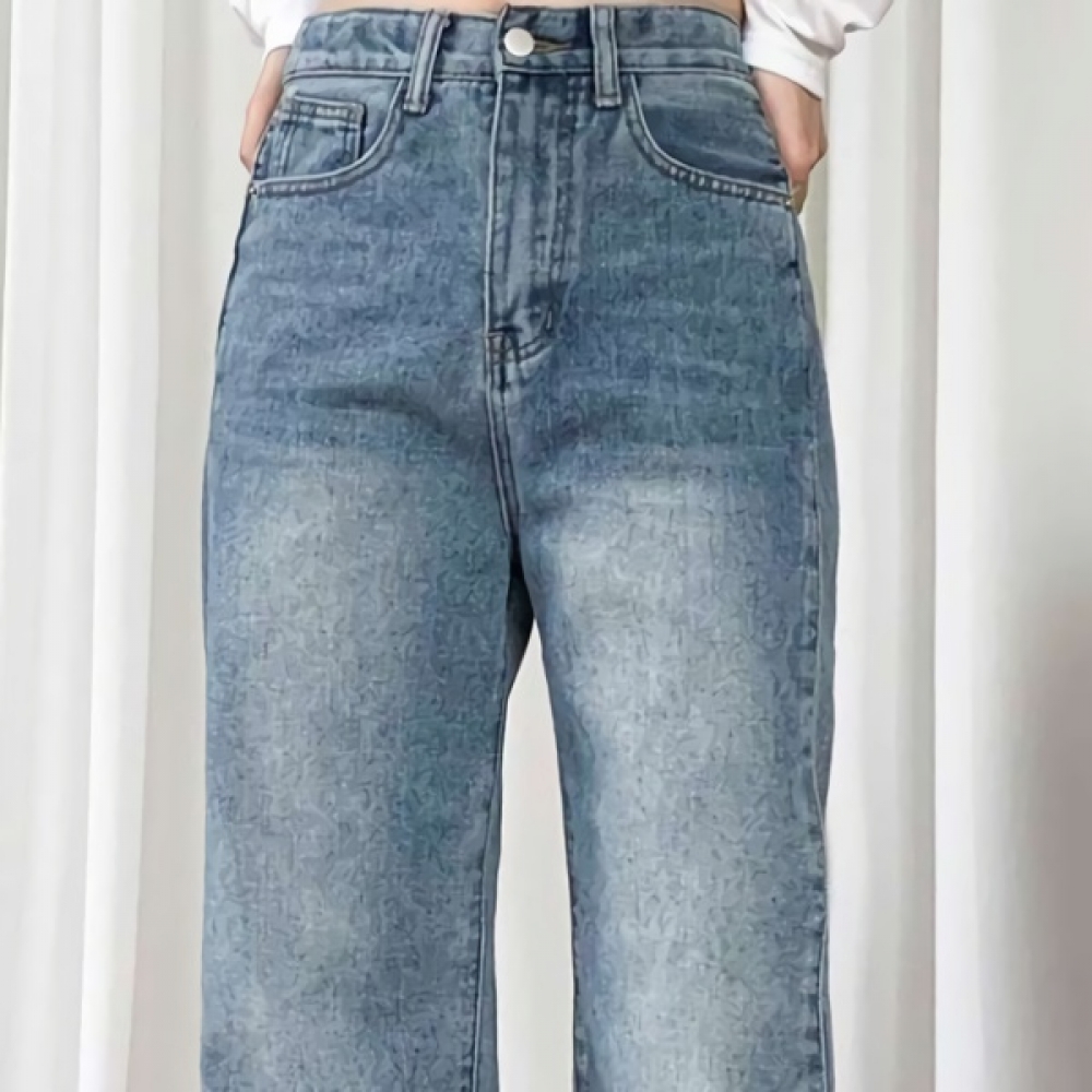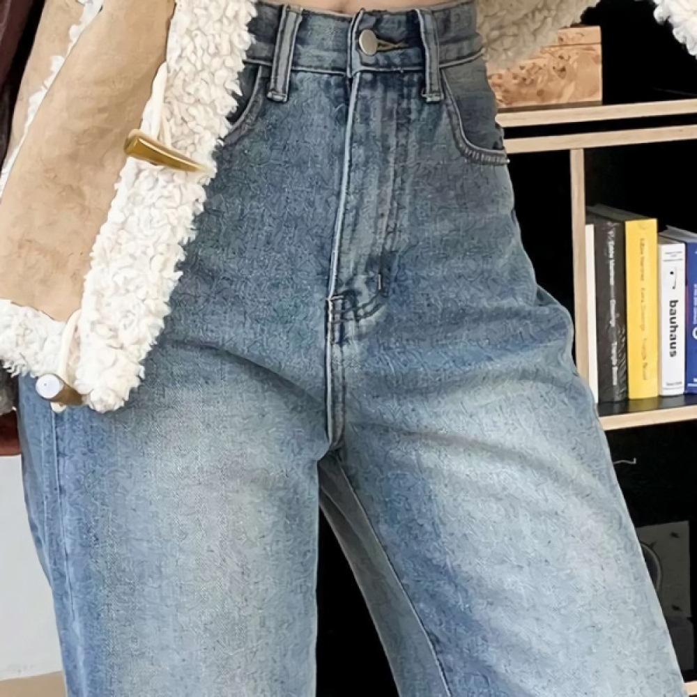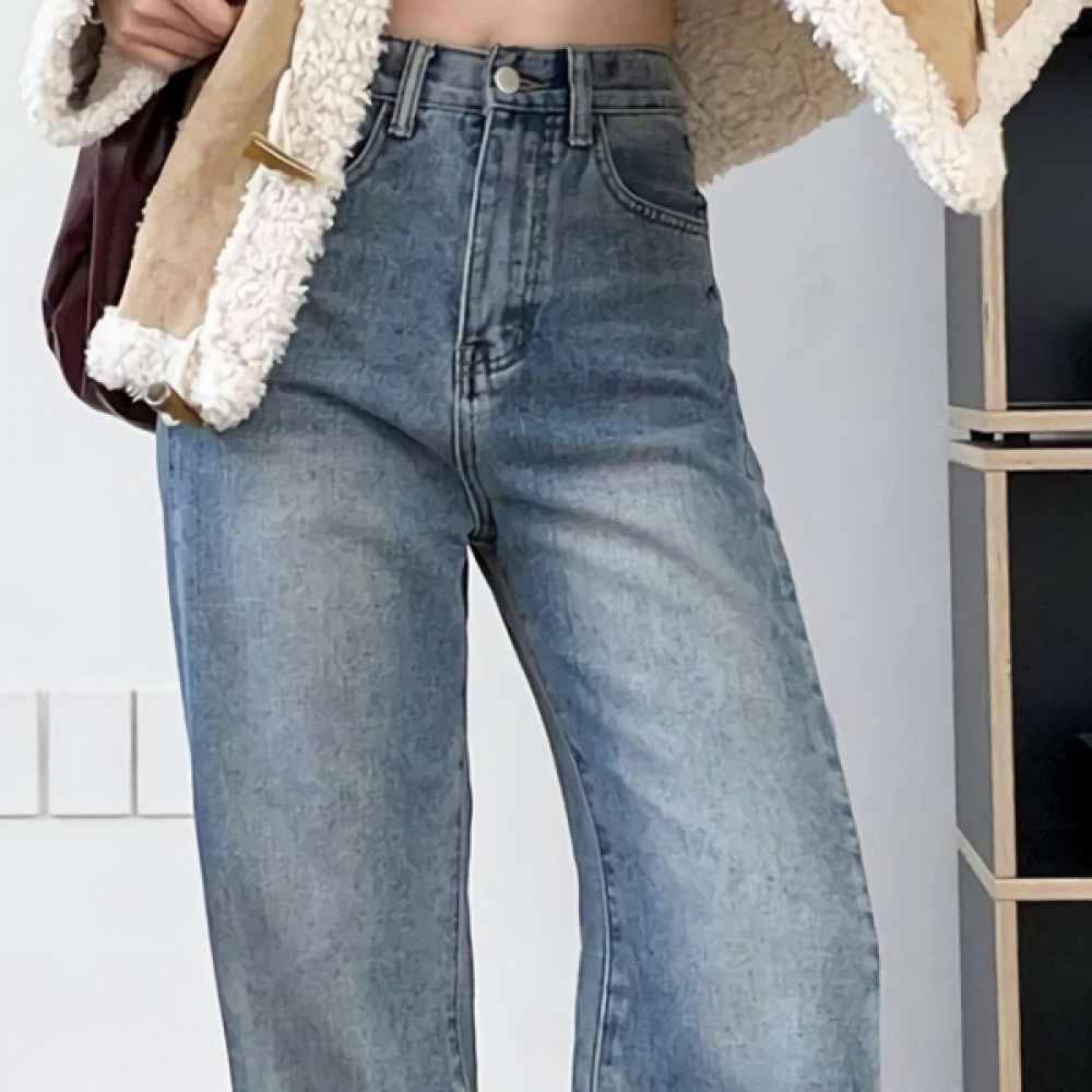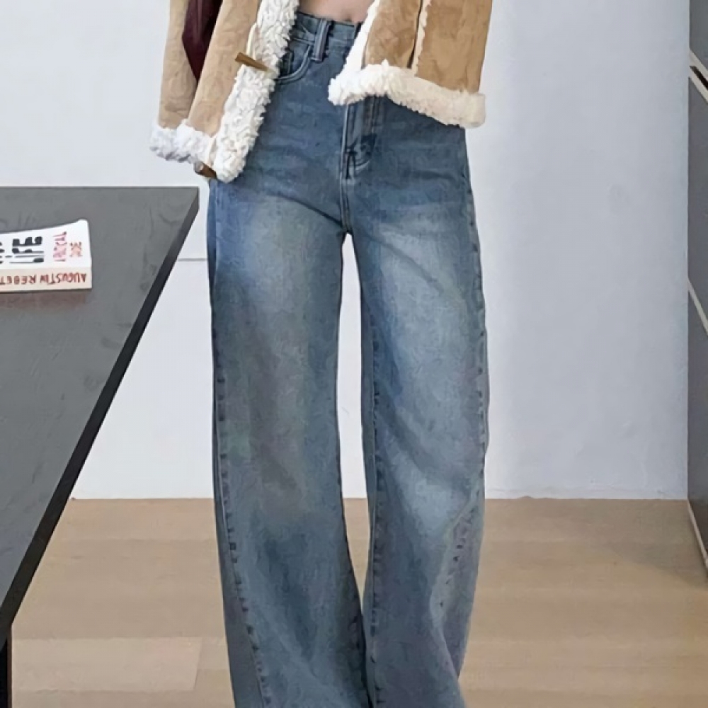 여성 논페이드 커브드 와이드 기모 데님 팬츠