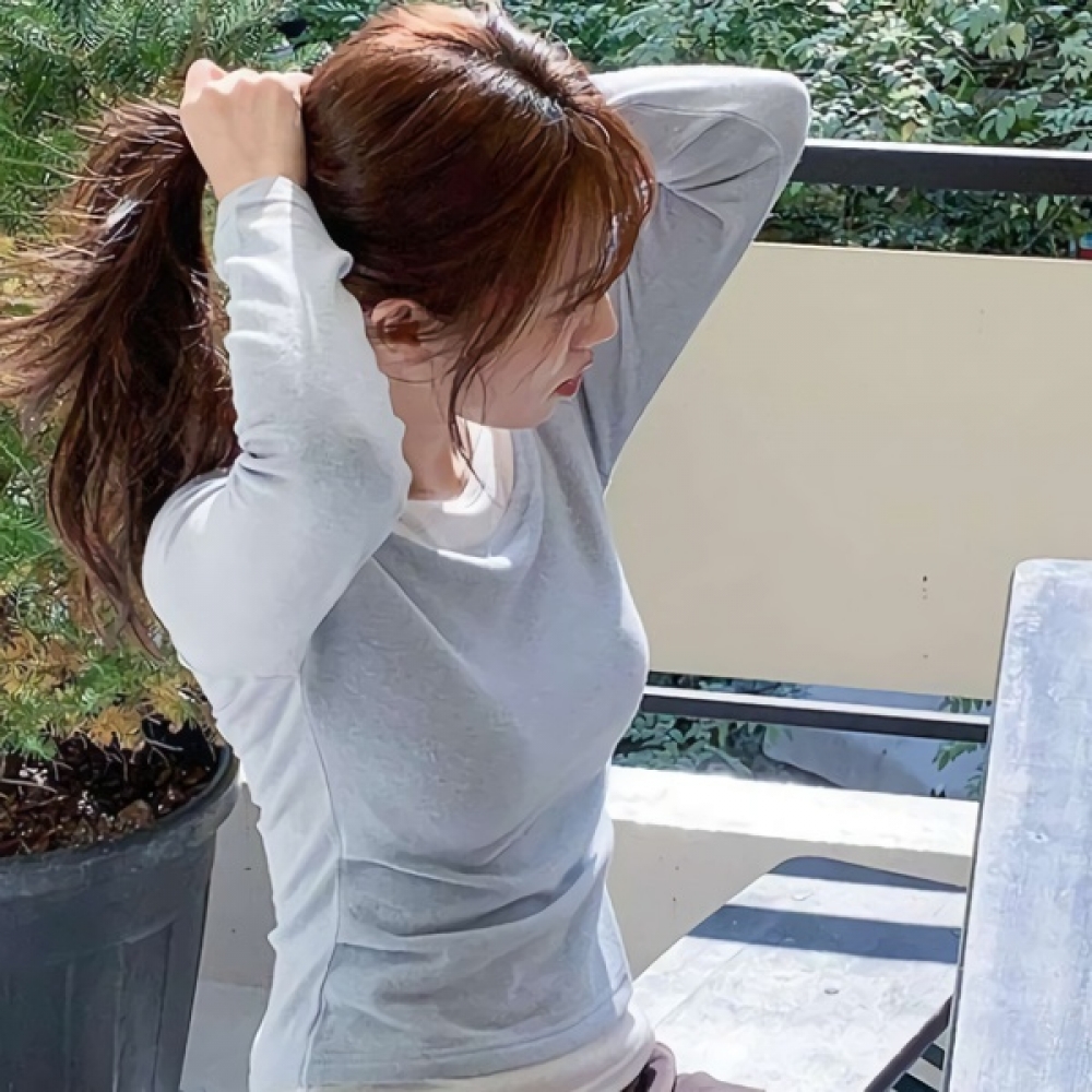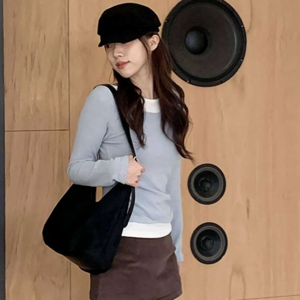 여성 보트넥 앙고라 배색 레이어드 티셔츠