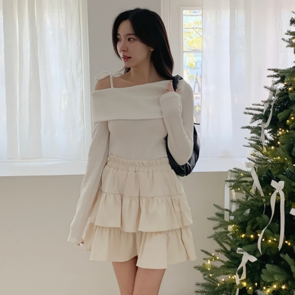 여성 겨울 오프숄더 리본 니트 티셔츠
