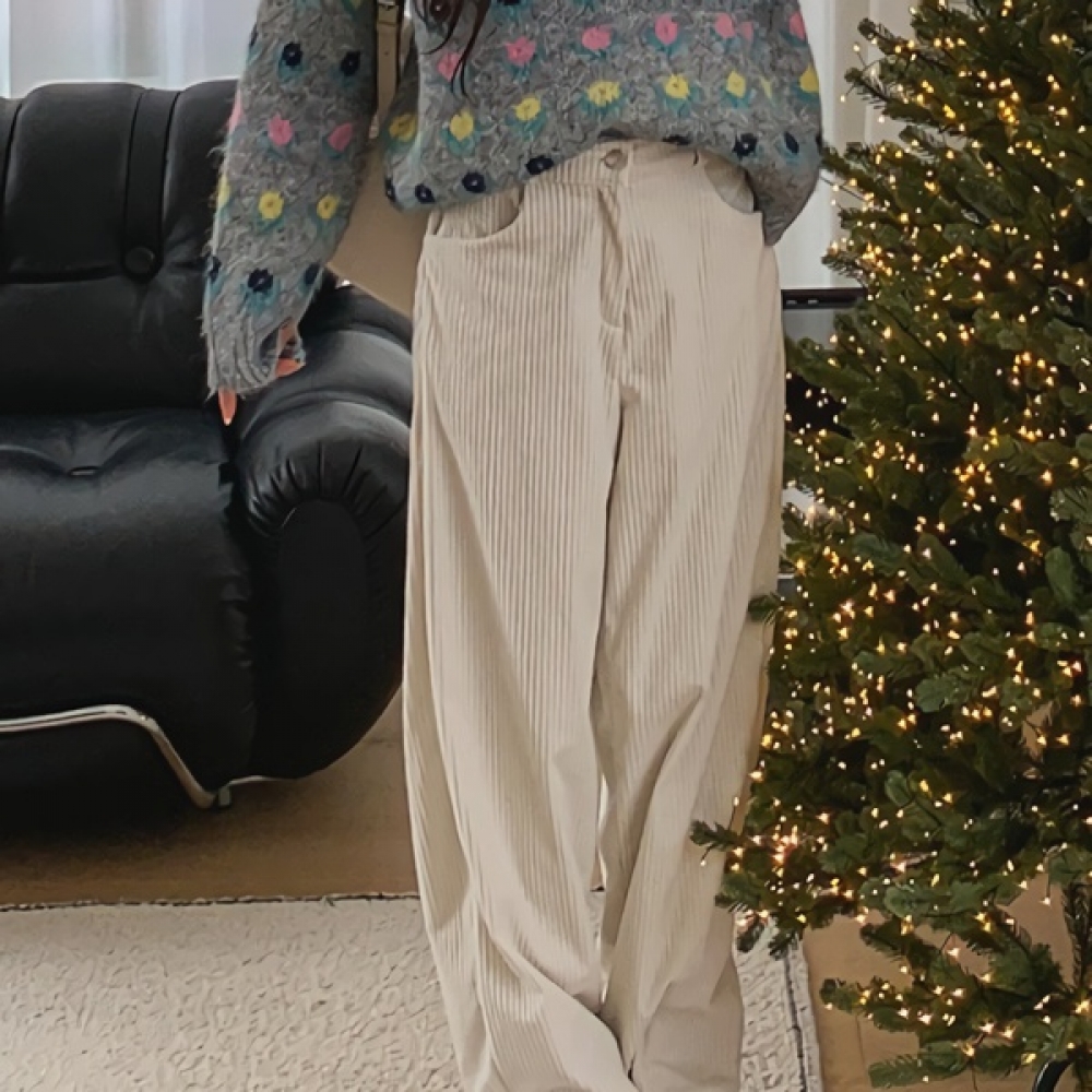 여성 겨울 데일리 기모 와이드 코듀로이 팬츠
