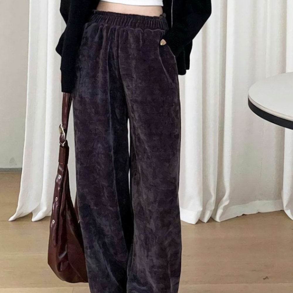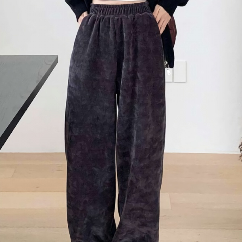 여성 논페이드 커브드 와이드 기모 데님 팬츠