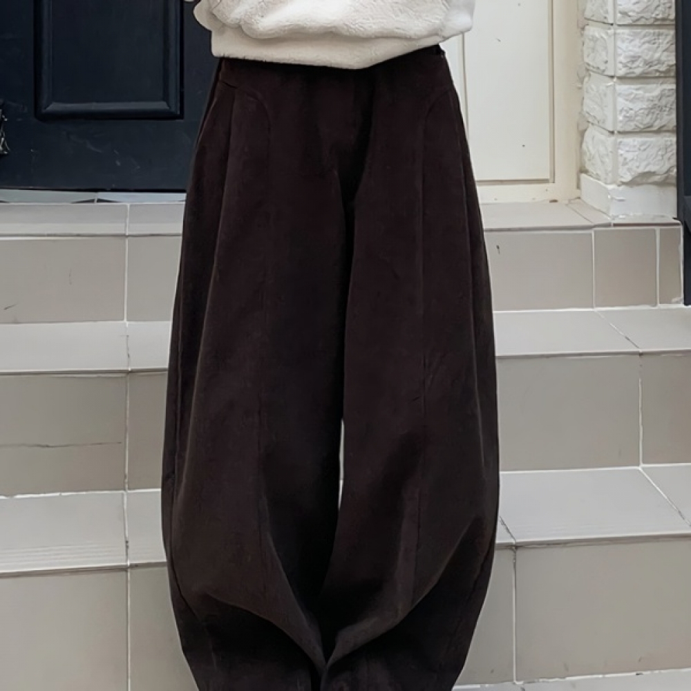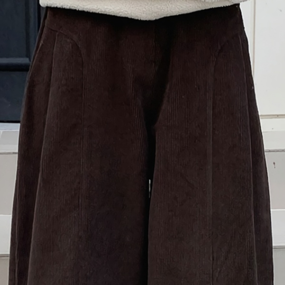 여성 골덴 핀턱 커브드 와이드 밴딩 팬츠