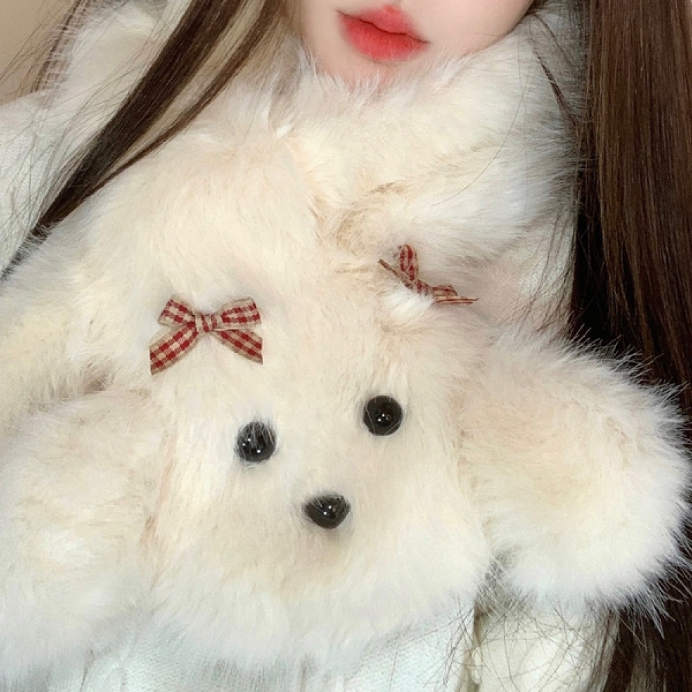 여성 겨울 울 말티푸 댕댕이 페이크퍼 머플러