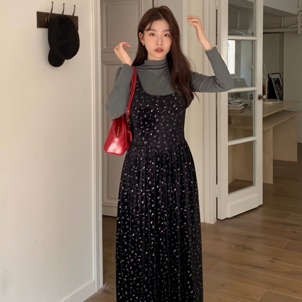 여성 봄 하이엔드 블랙 롱원피스
