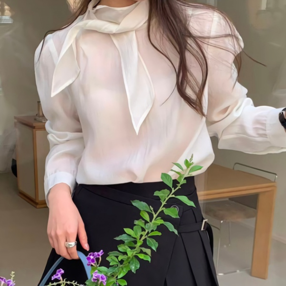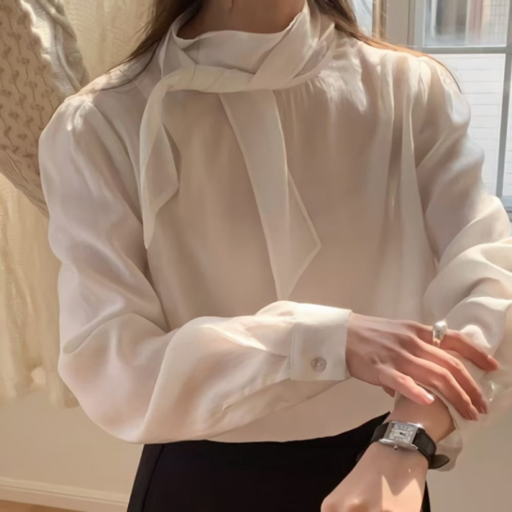 여성 봄 데일리 타이 퍼프 블라우스