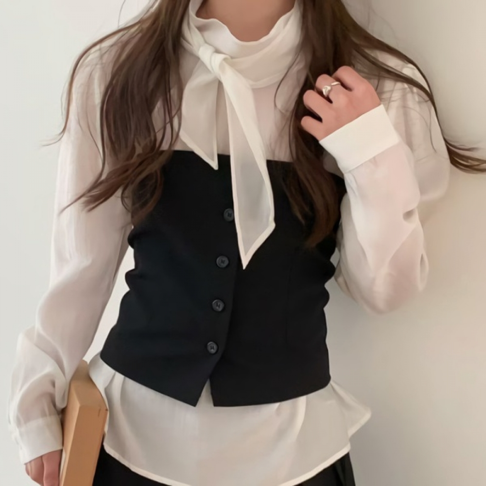 여성 봄 데일리 리본 셔링 나시 블라우스