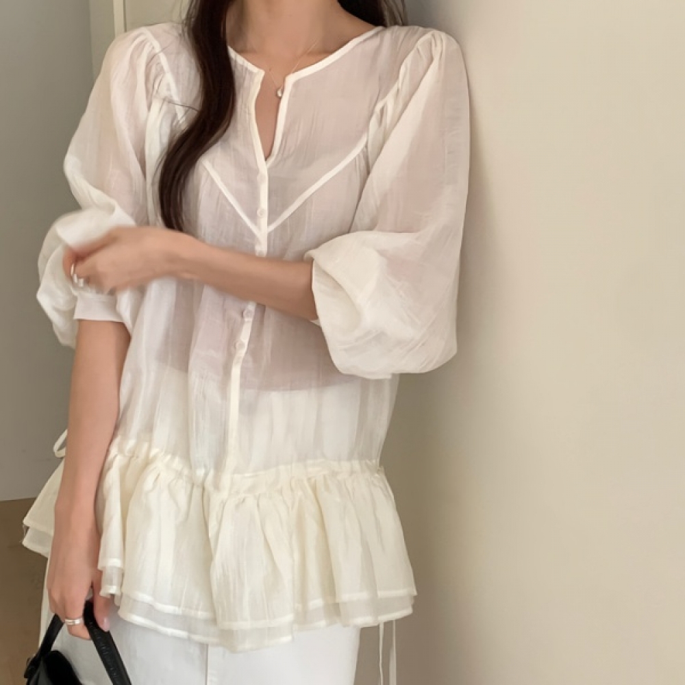 여성 봄 데일리 스트링 캉캉 블라우스