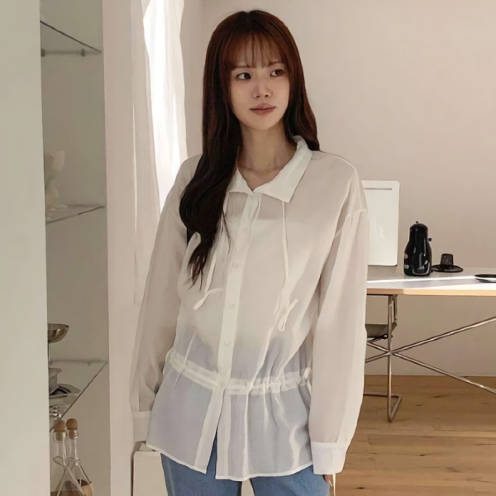 루즈핏 스트링 레이어드 긴팔 블라우스