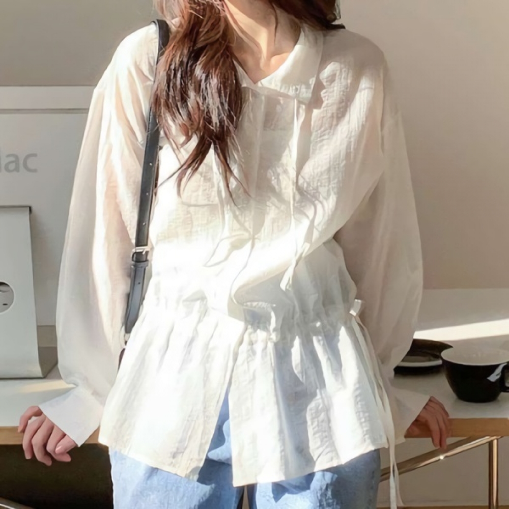 여성 봄 데일리 타이 퍼프 블라우스