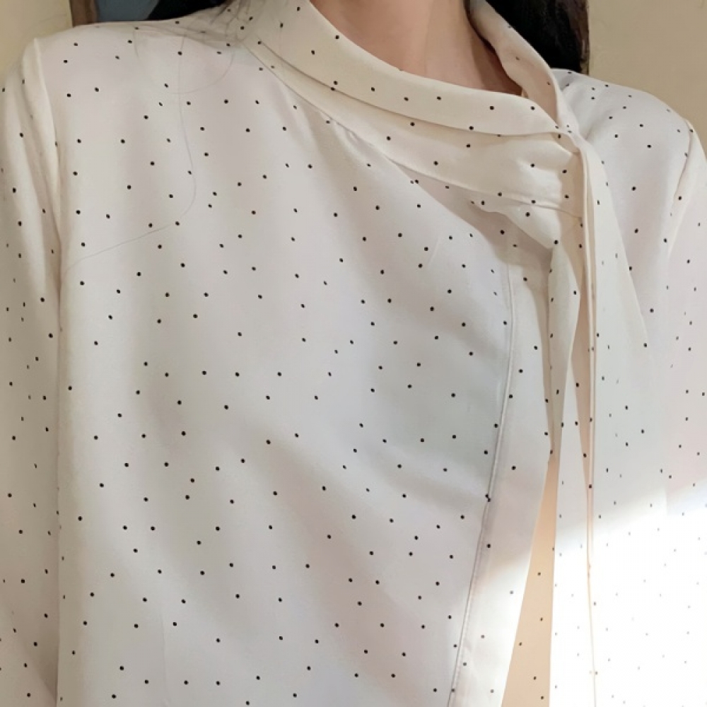 여성 봄 데일리 도트 프릴 카라 블라우스