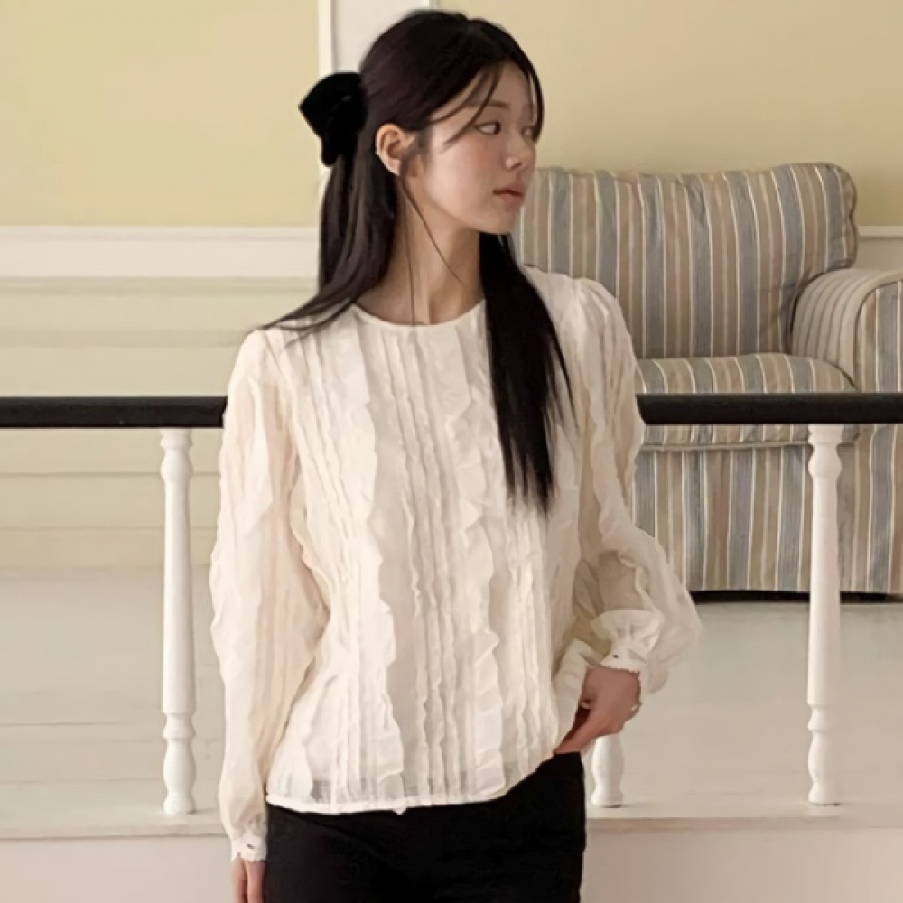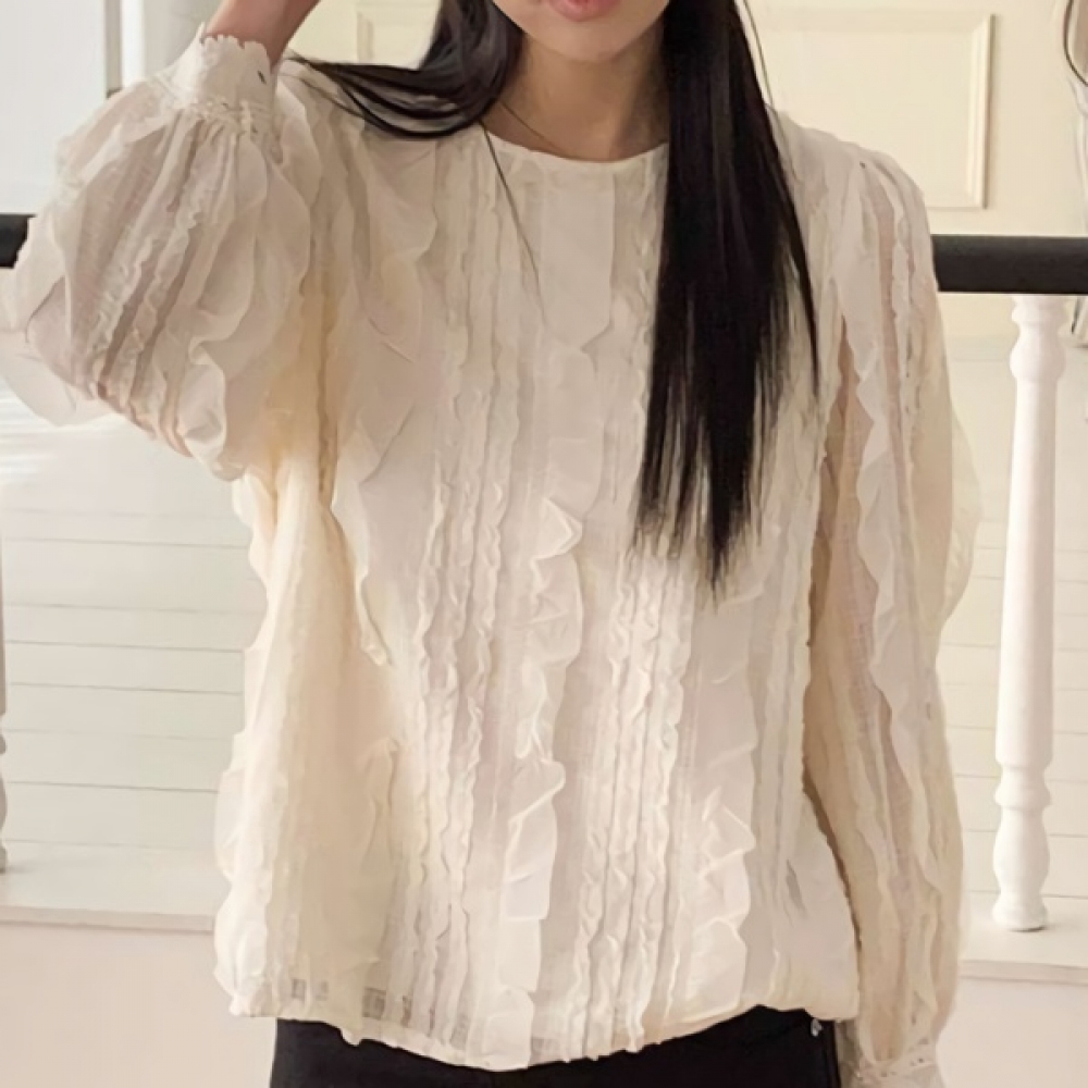 여성 프릴 레이스 라운드 블라우스