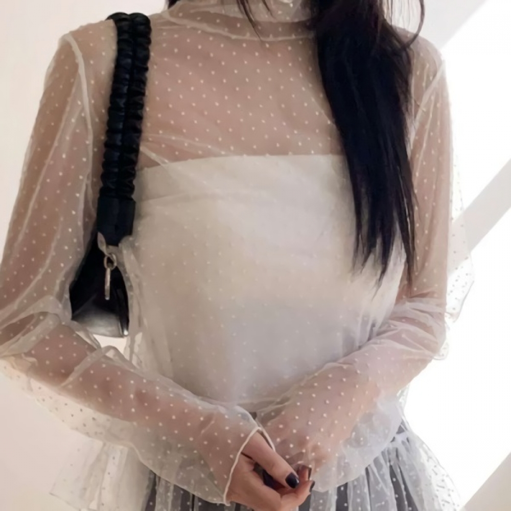 여성 봄 데일리 하이넥 블라우스 티셔츠