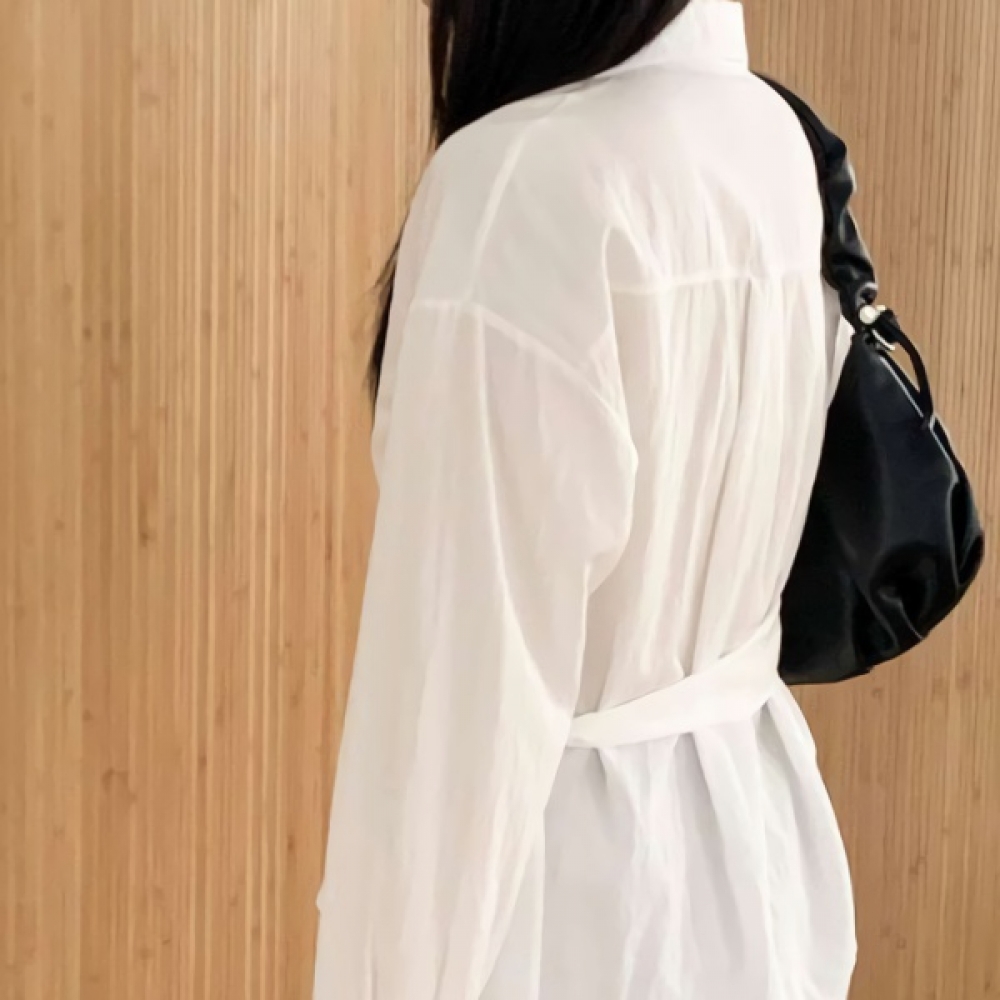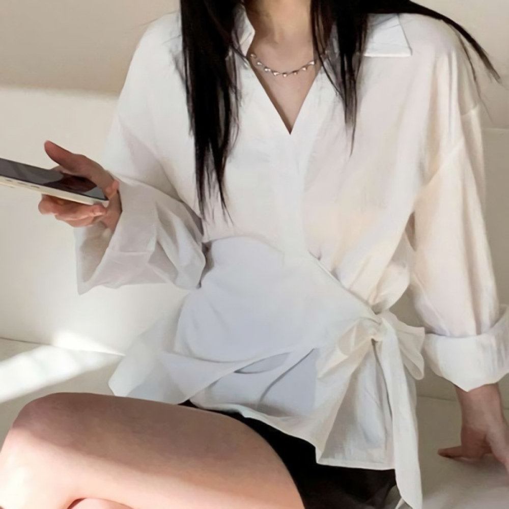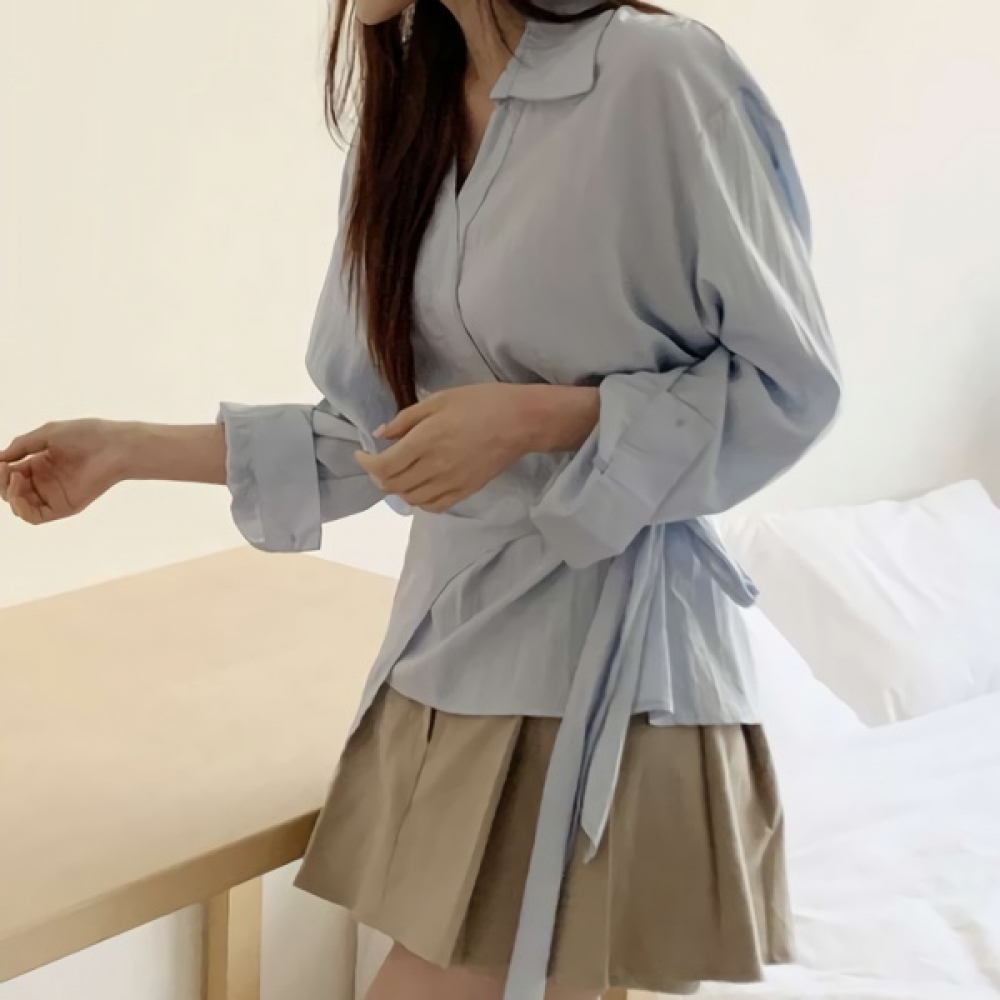 여성 스트랩 오버핏 랩 셔츠 블라우스