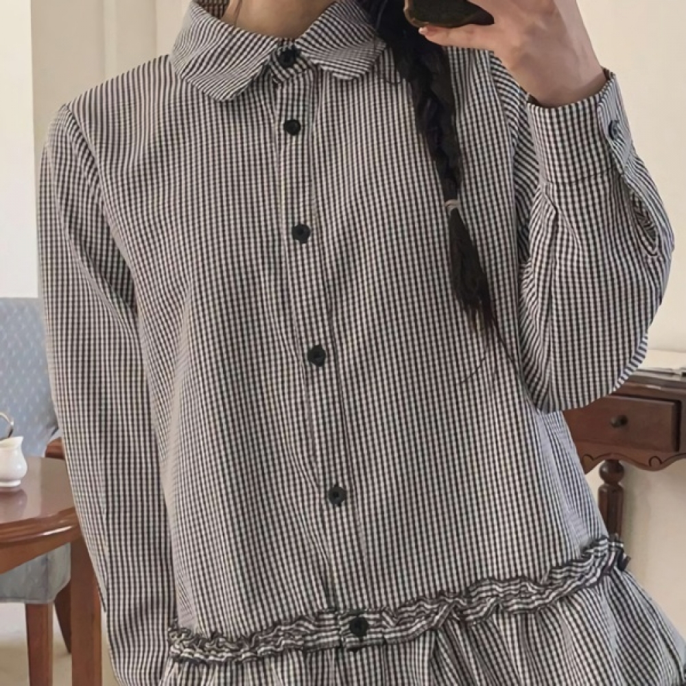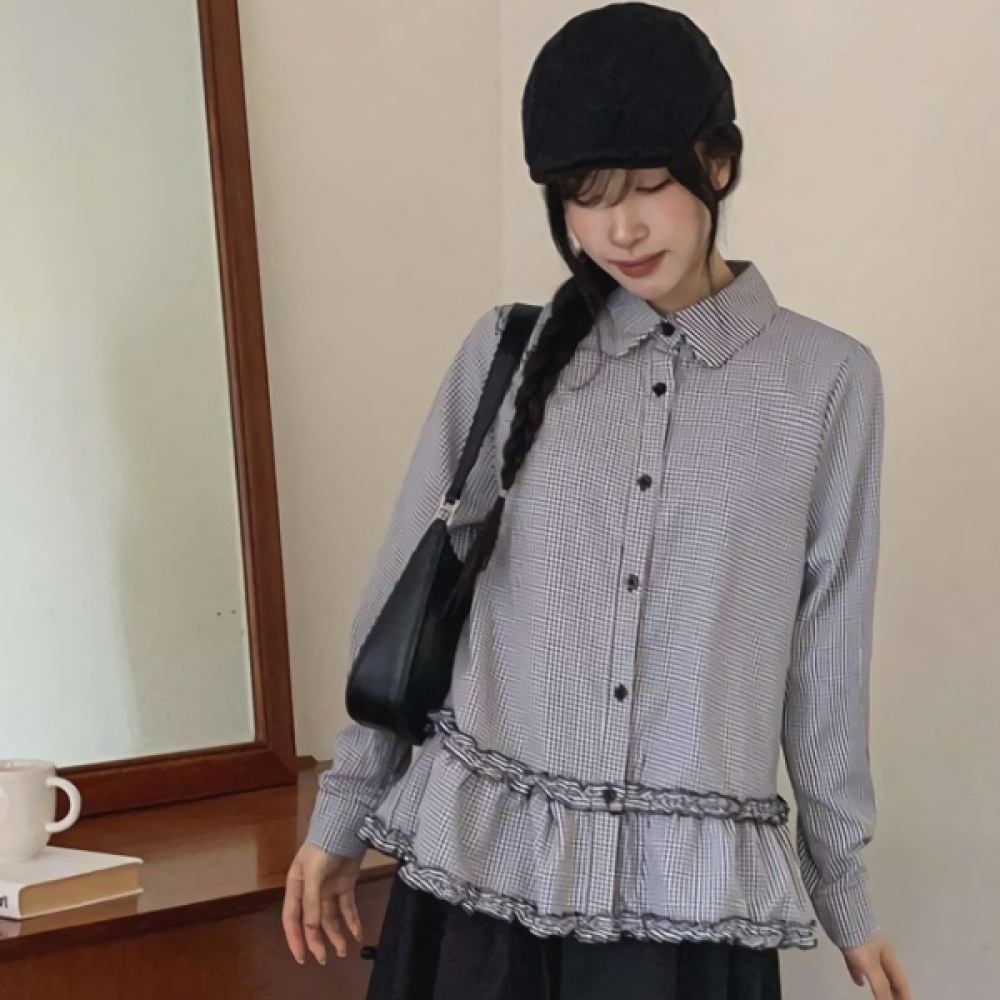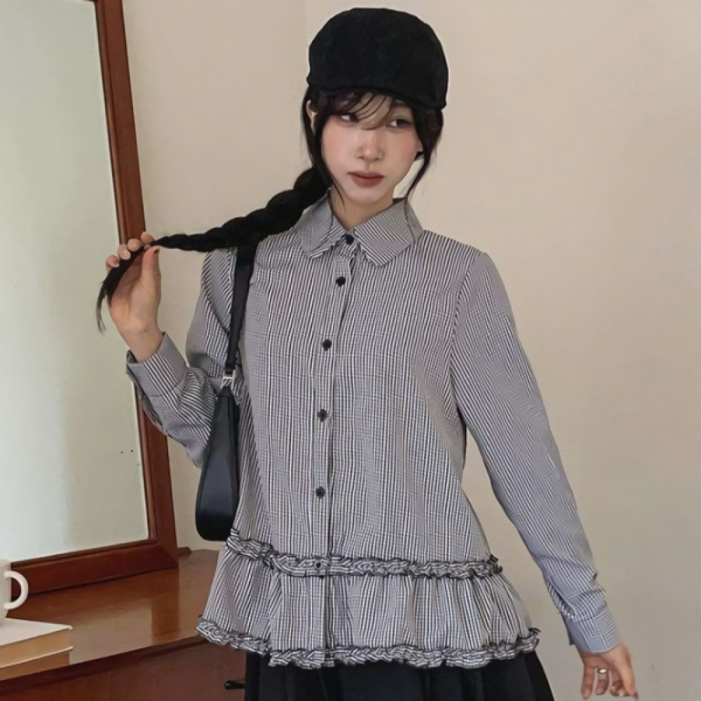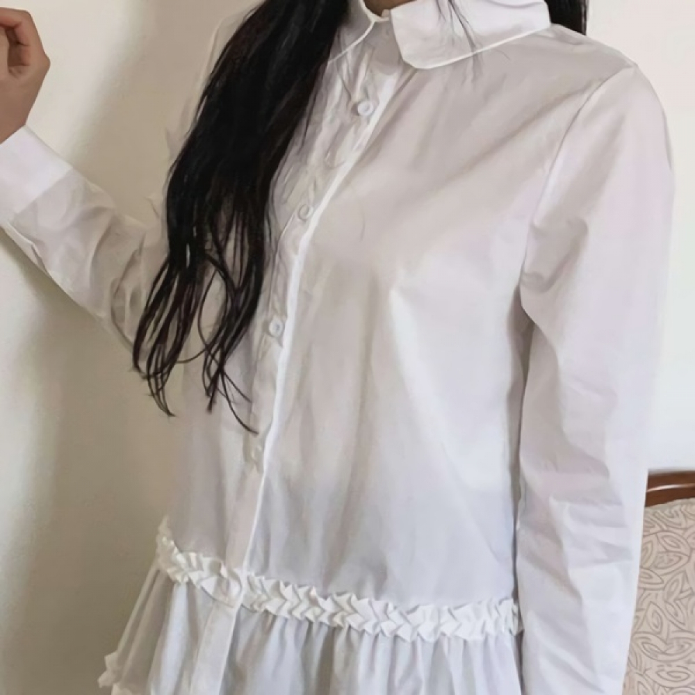 여성 봄 오버핏 프릴 카라 긴팔 셔츠