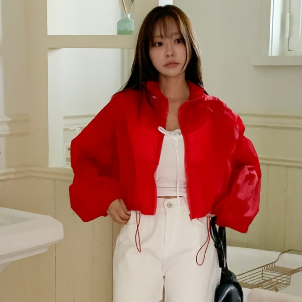 여성 나일론 하이넥 집업 크롭 여름 바람막이