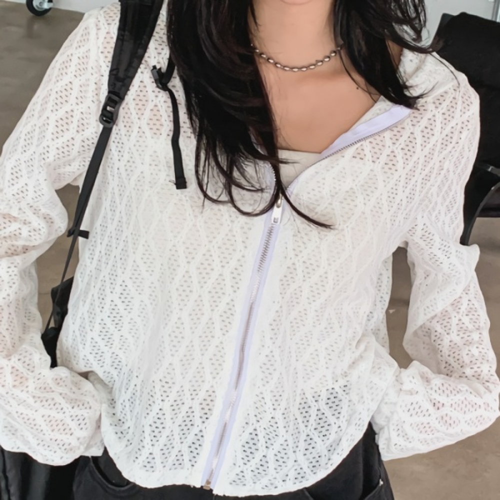 여성 봄 데일리 펀칭 물결 그물 후드 집업