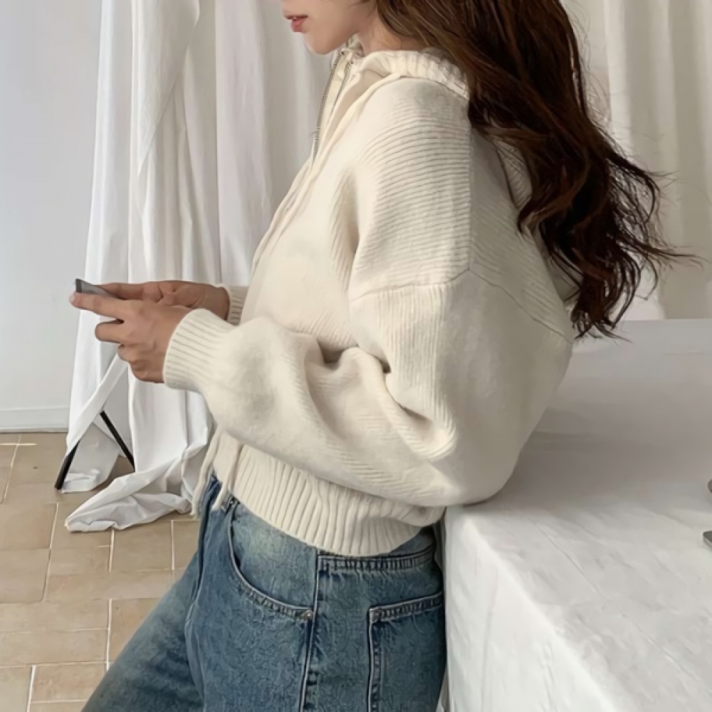 여성 캐시미어 크롭 니트 후드 집업