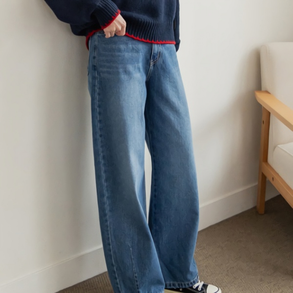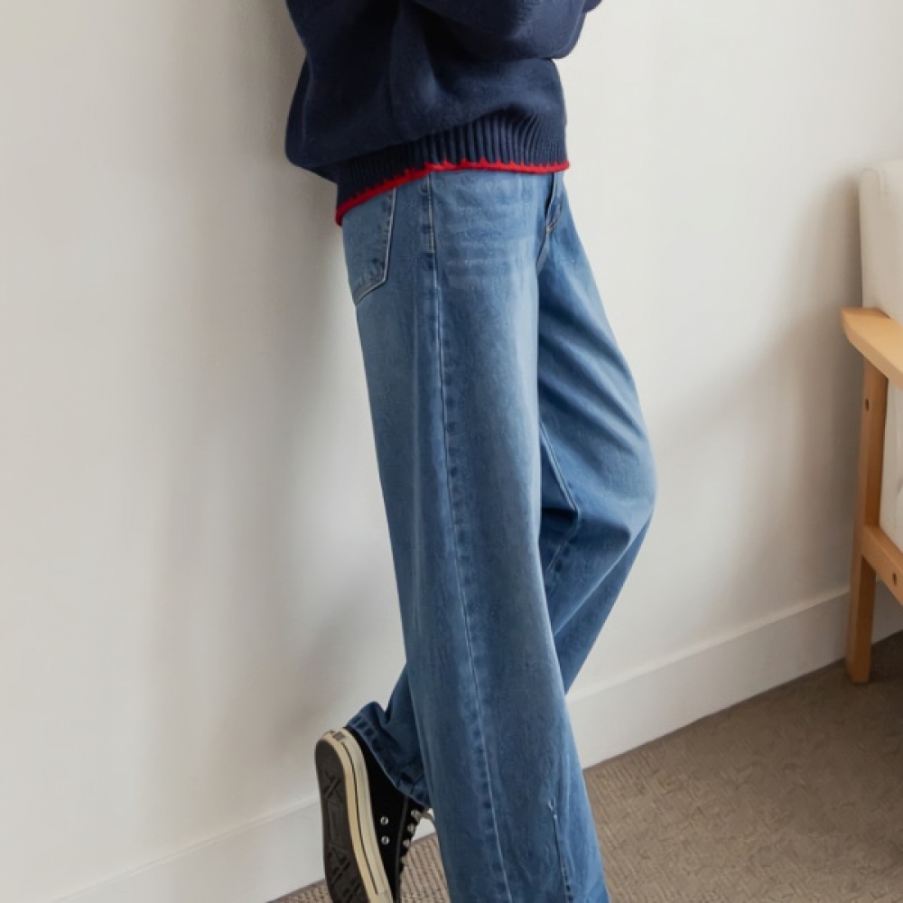 여성 프리미엄 워싱 포켓 일자 데님 팬츠