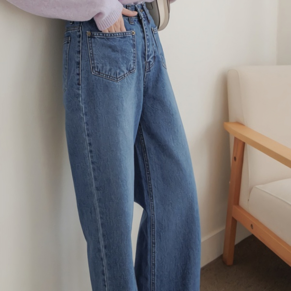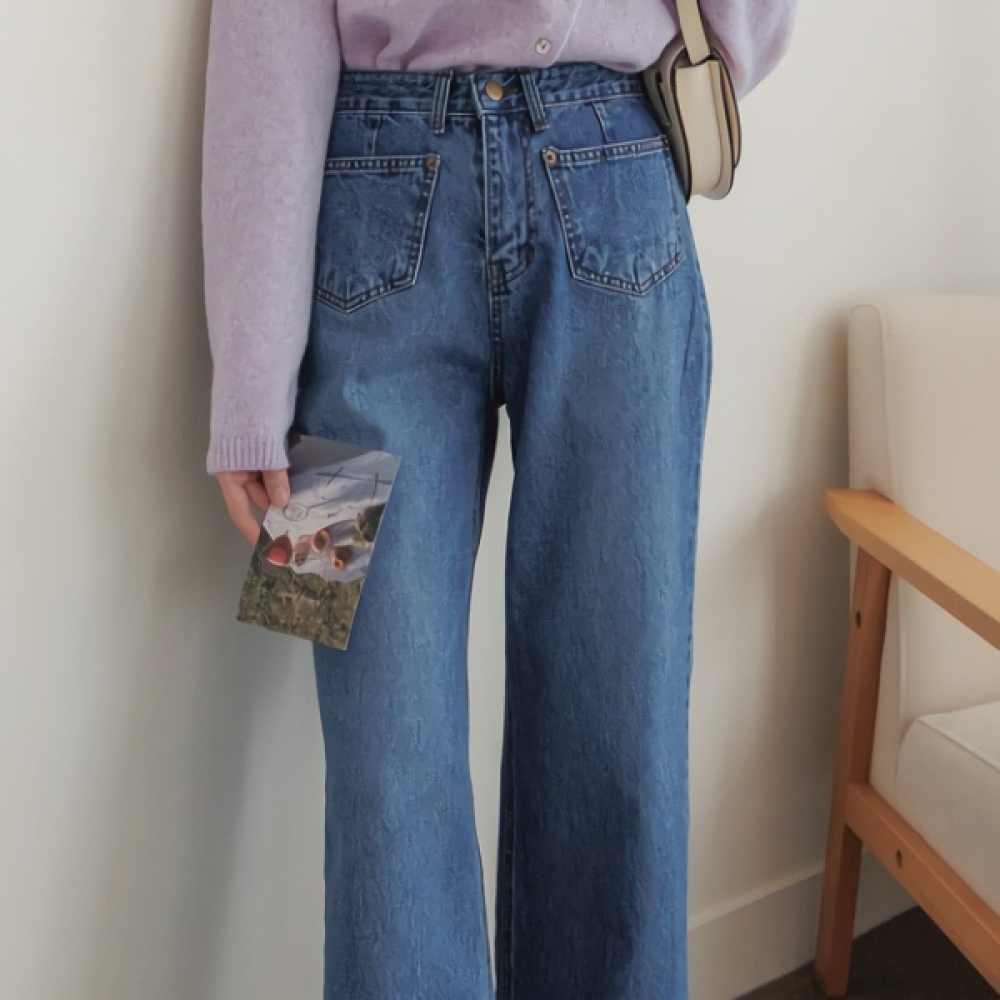 여성 프리미엄 워싱 포켓 일자 데님 팬츠