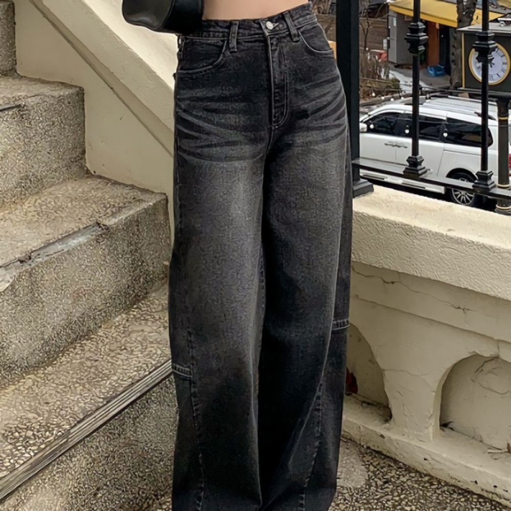 여성 벌룬핏 와이드 흑청 워싱 데님팬츠