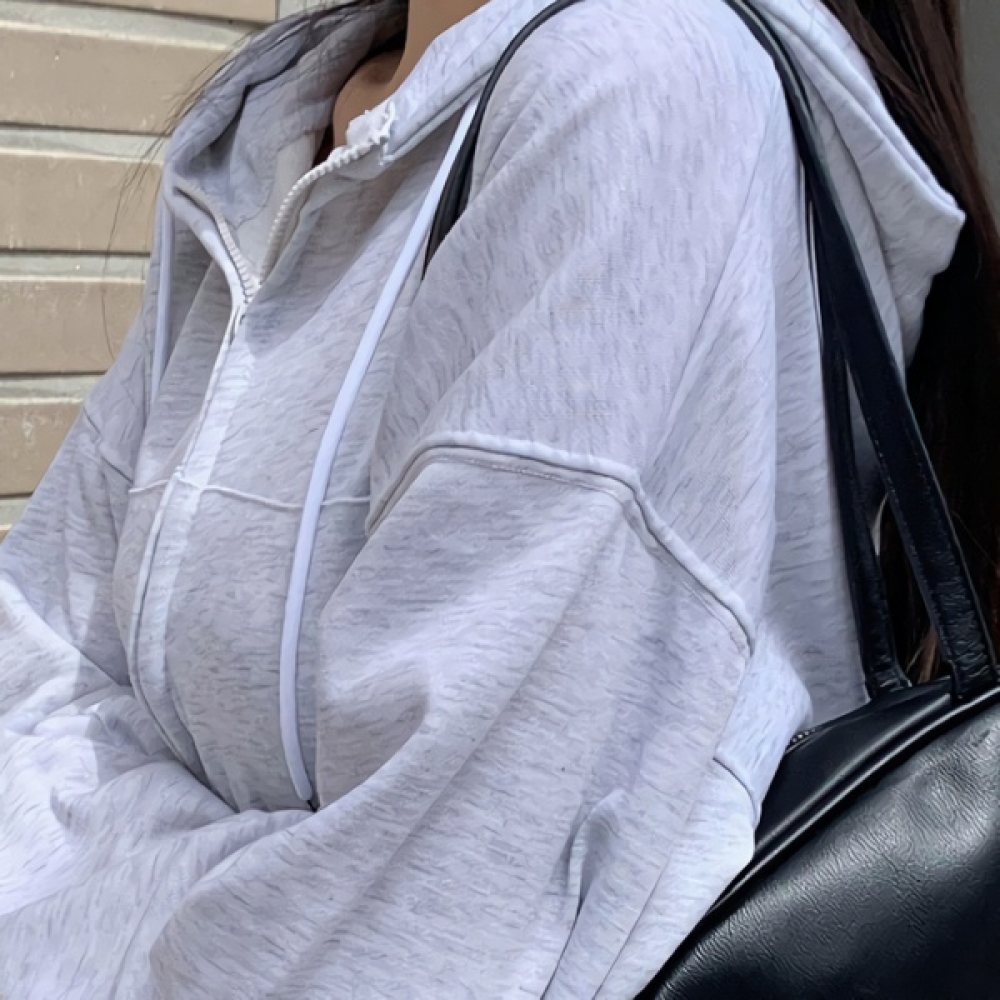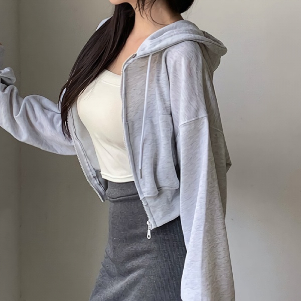 여성 봄 데일리 베이직 코튼 크롭 후드 집업
