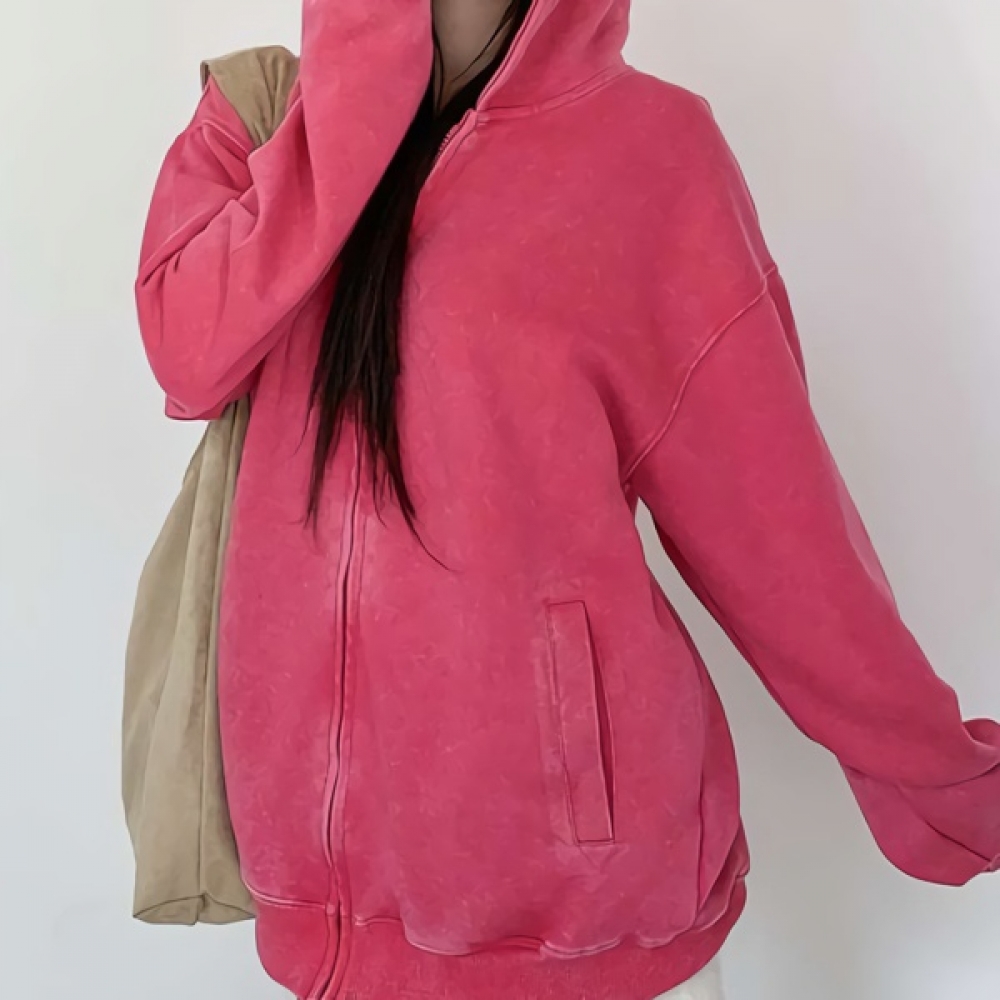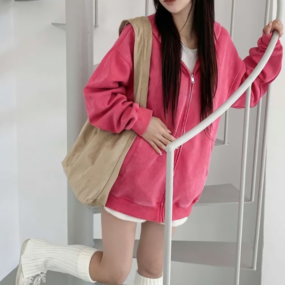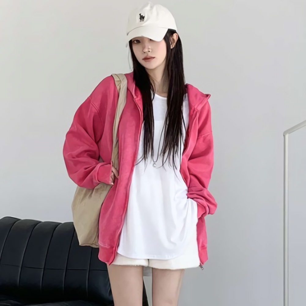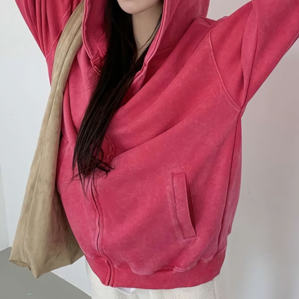 여성 루즈핏 빈티지 워싱 포켓 후드집업