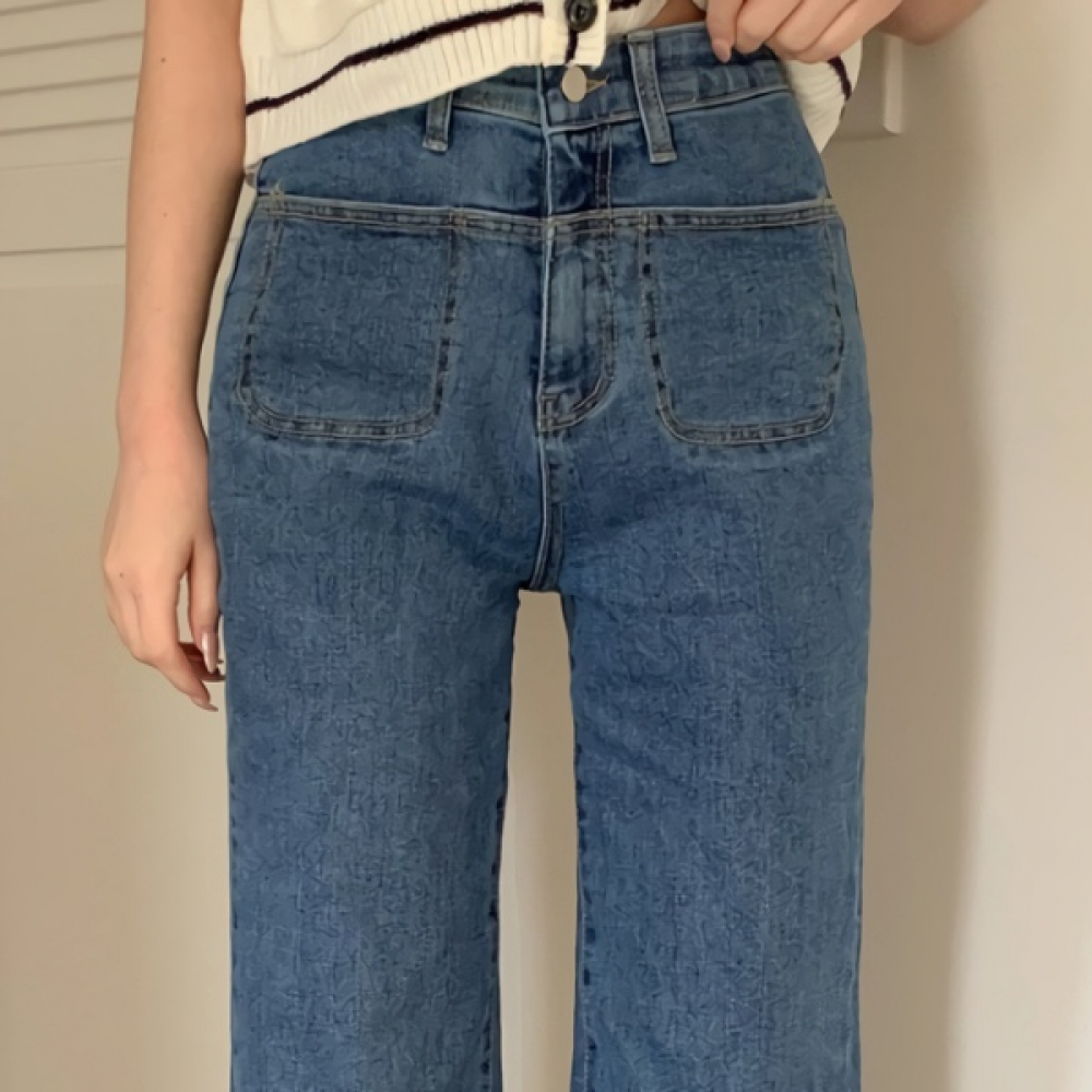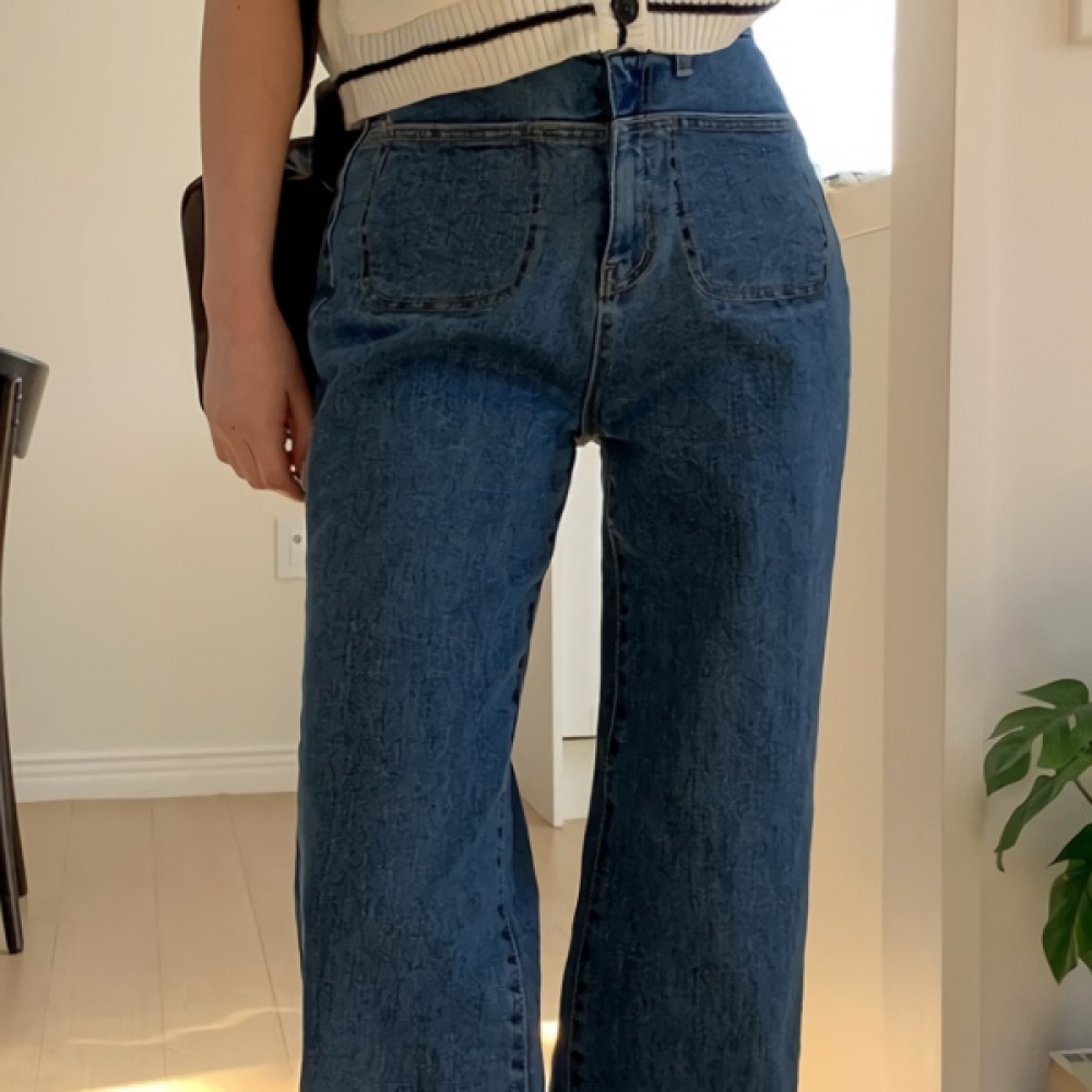 여성 프리미엄 워싱 포켓 일자 데님 팬츠