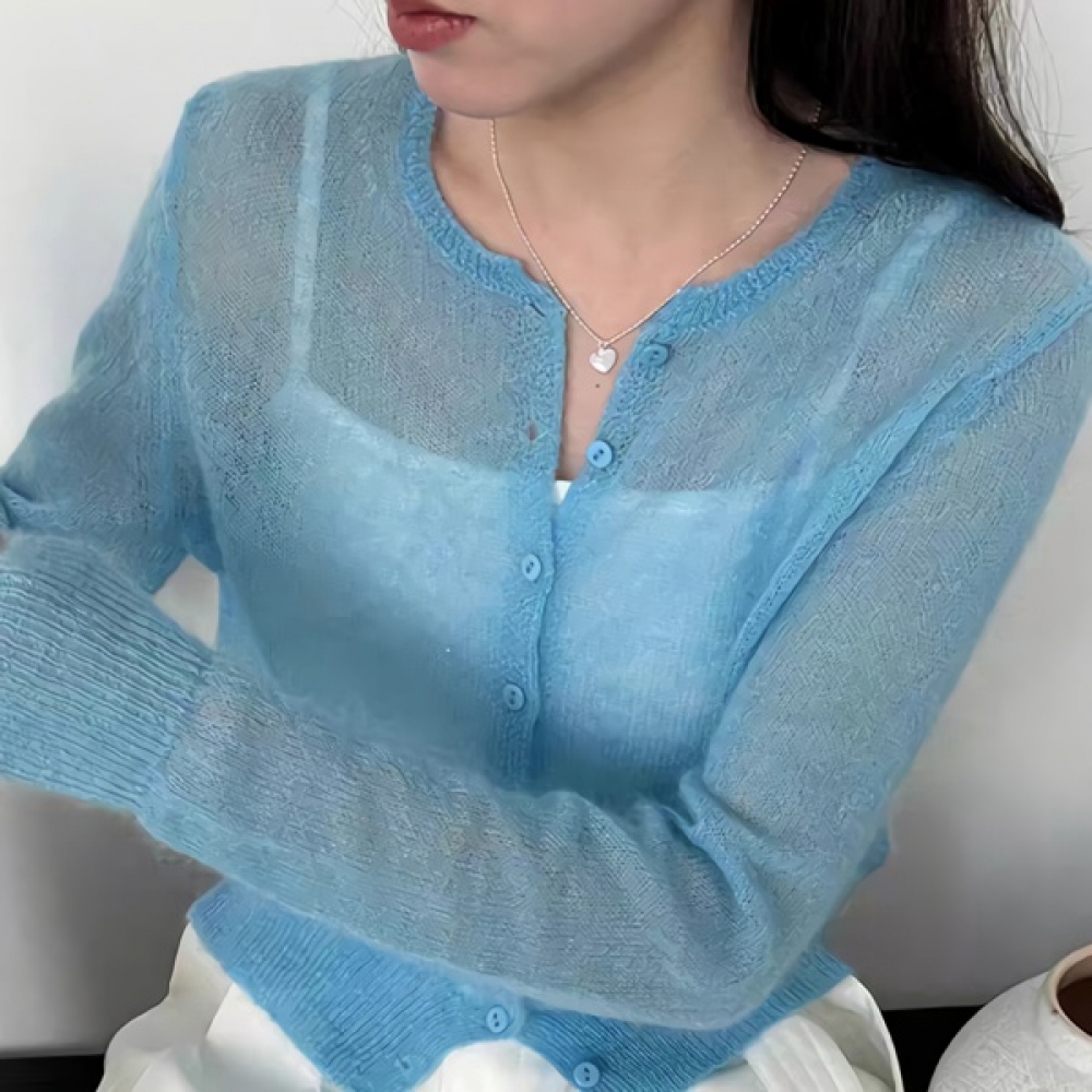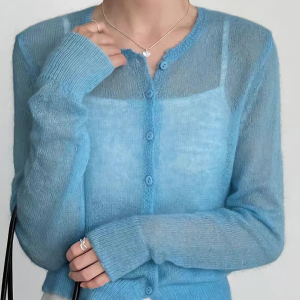 여성 봄 데일리 모헤어 라운드 가디건