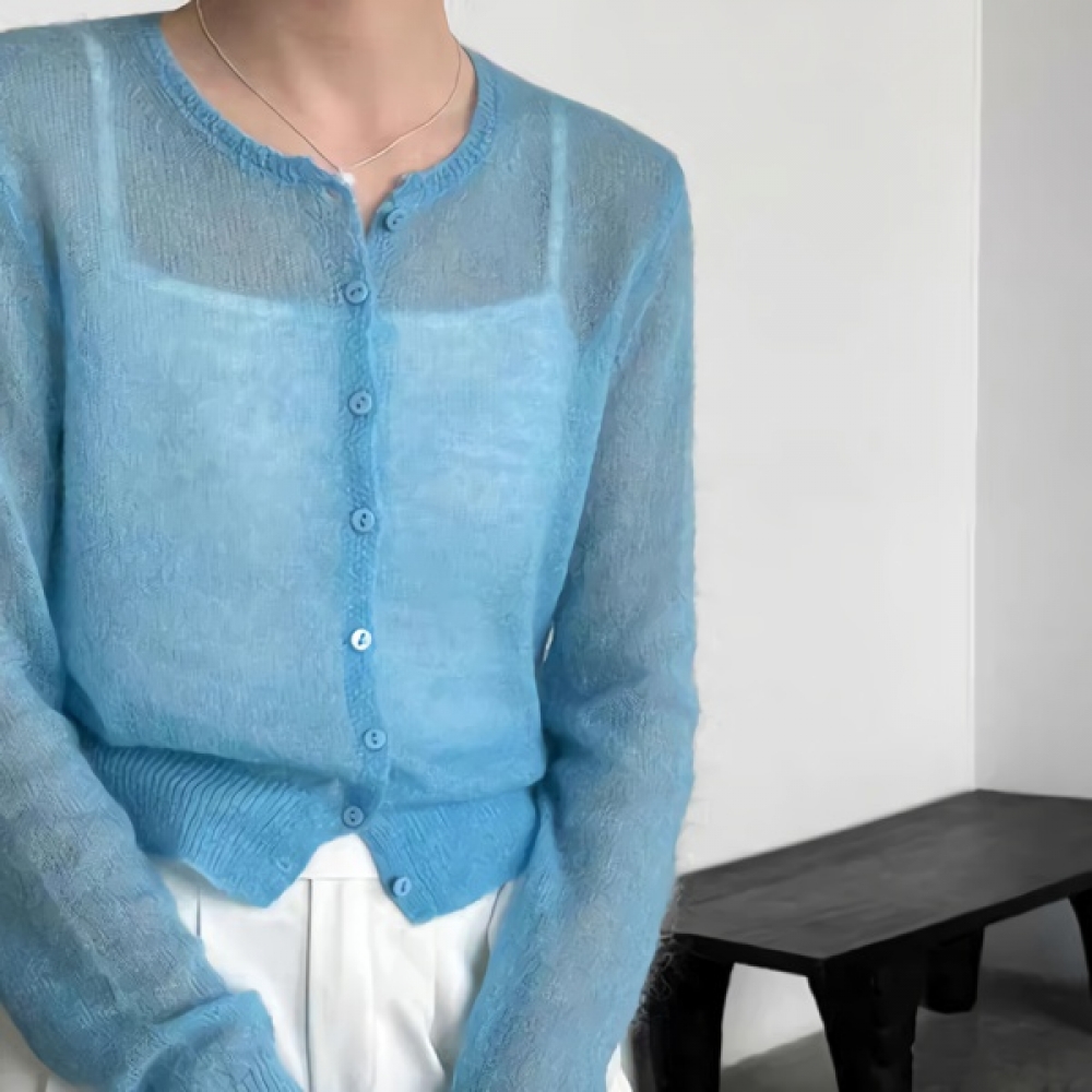 여성 봄 스카시 펀칭 반팔 니트 가디건