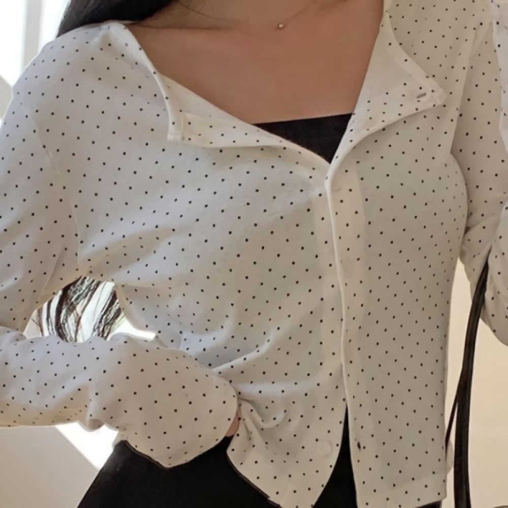 여성 슬림핏 도트 라운드 세미크롭 가디건