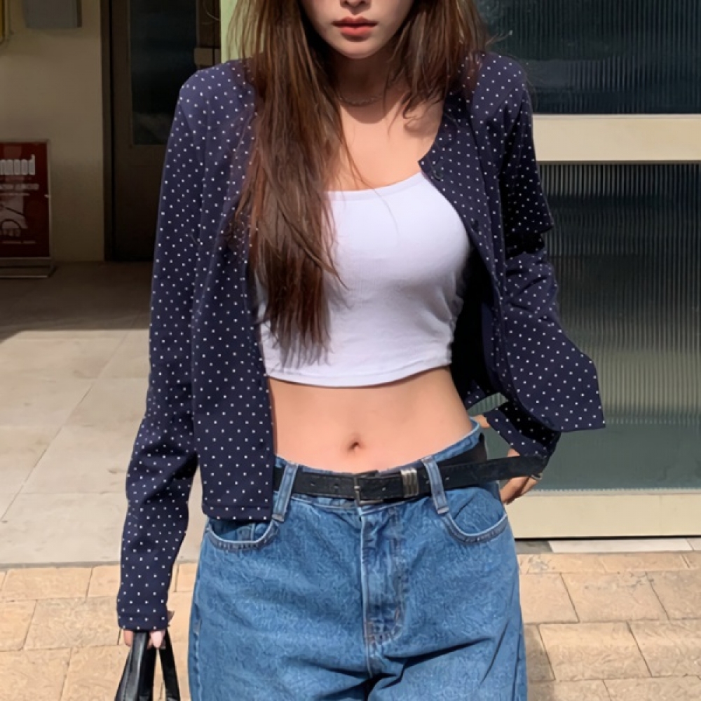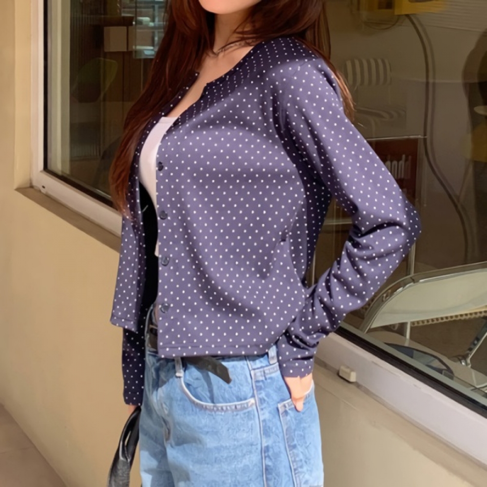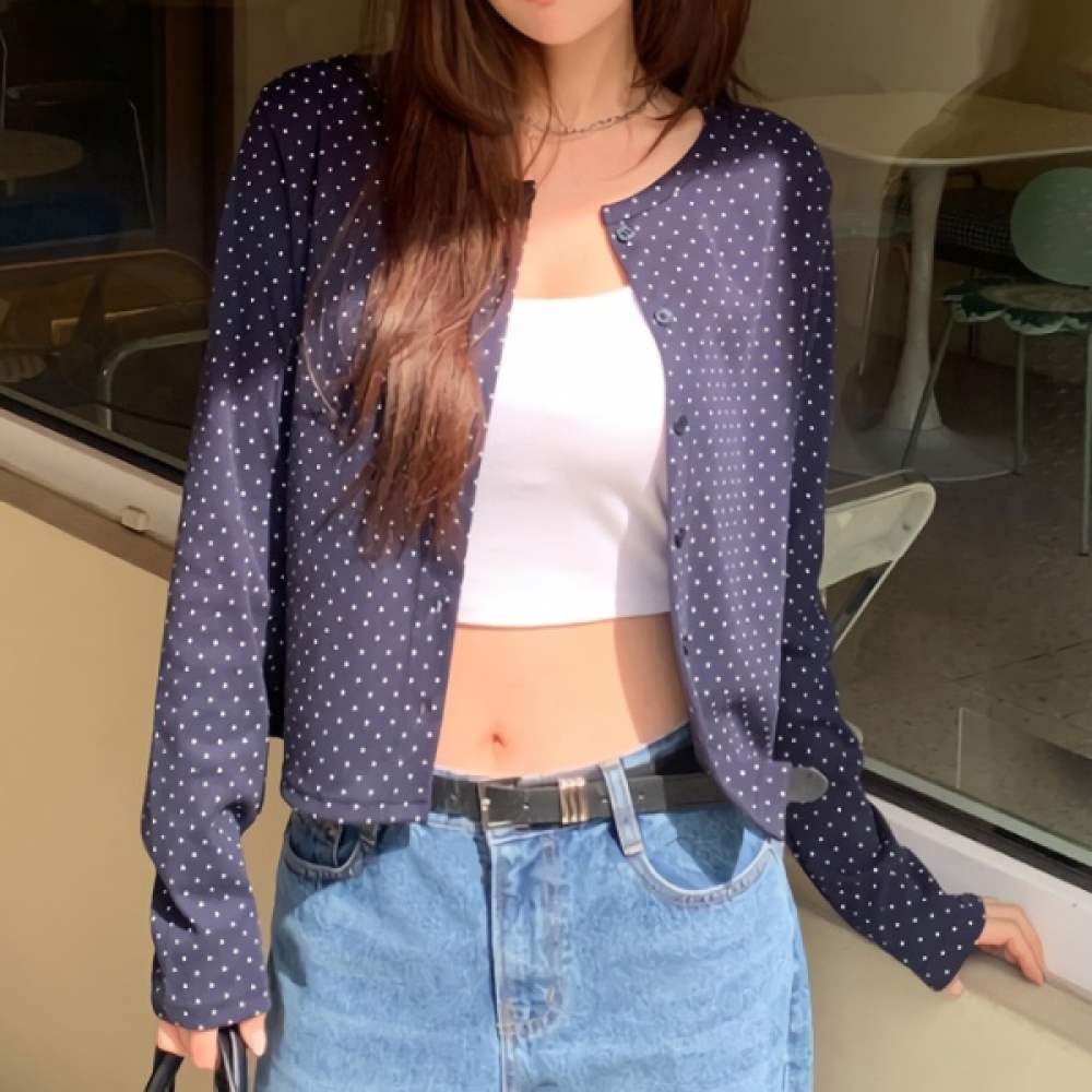 여성 봄 스카시 펀칭 반팔 니트 가디건
