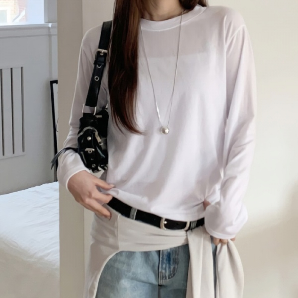 여성 부드러운 모달 코튼 기본 라운드 티셔츠