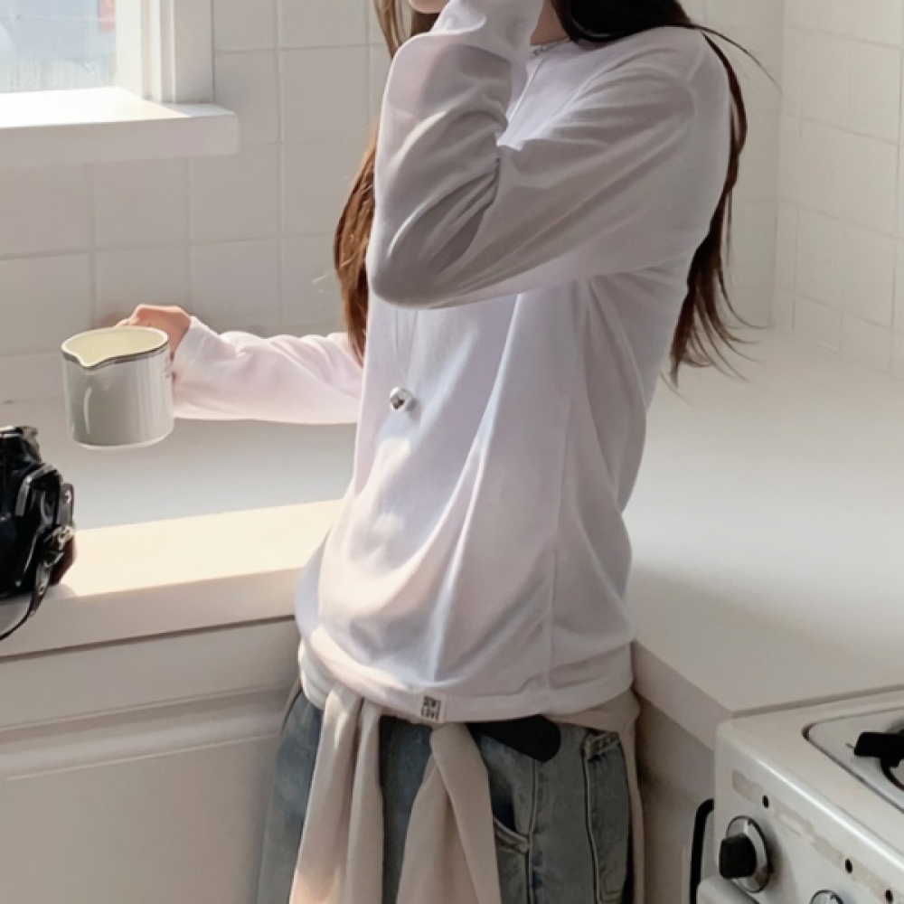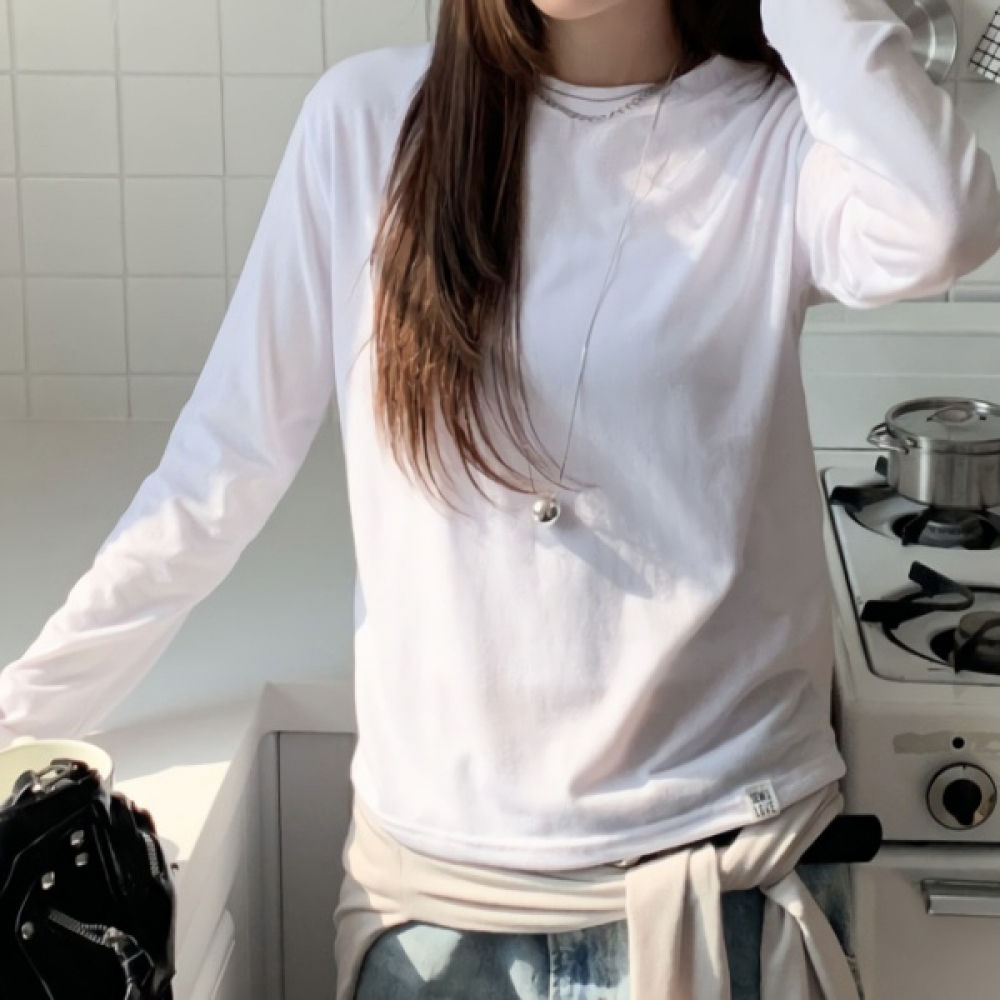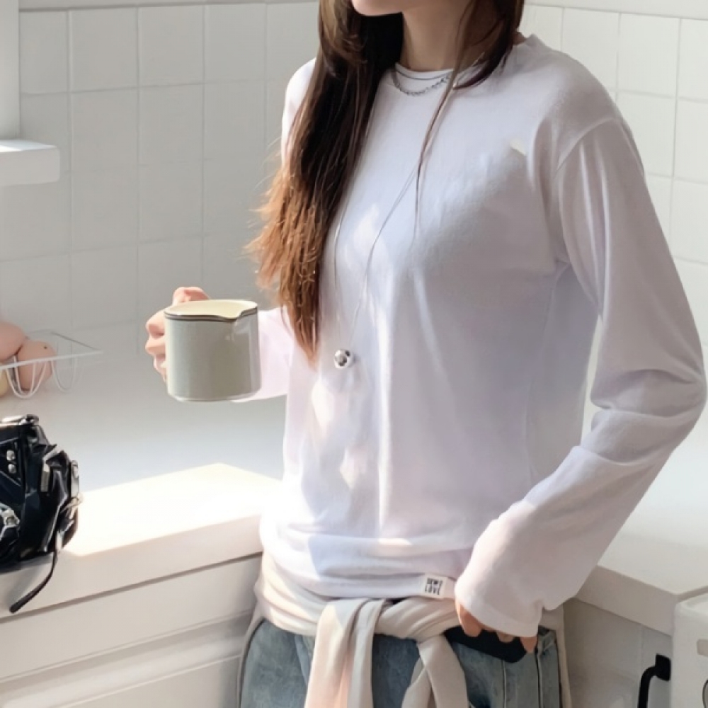 여성 라벨 루즈핏 무지 라운드 티셔츠