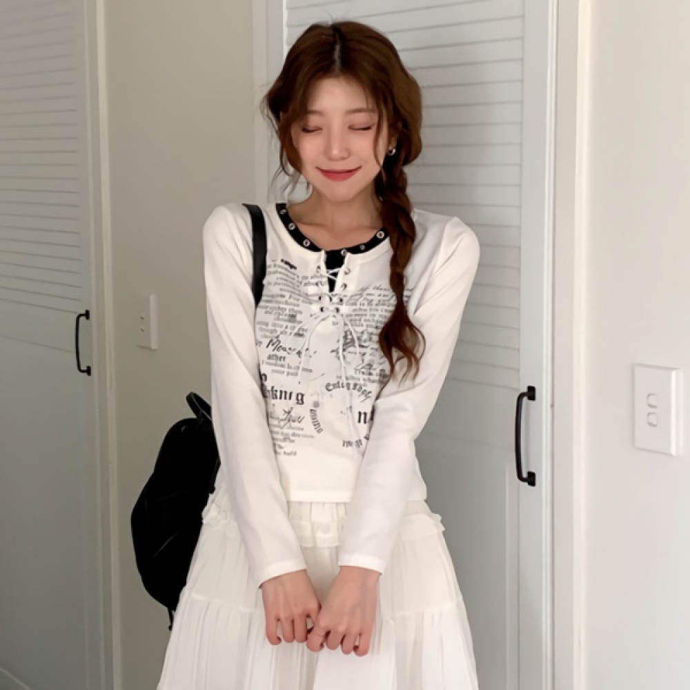 여성 레터링 패턴 레이어드 아일렛 티셔츠