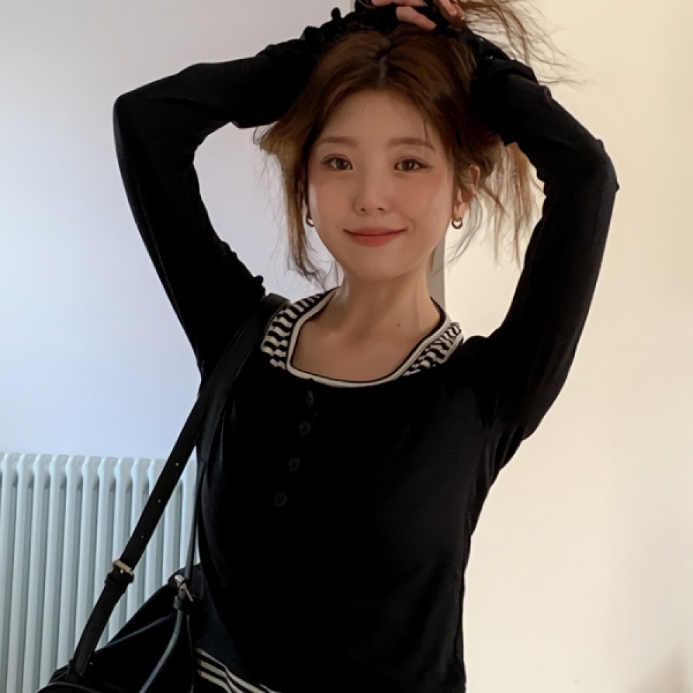 여성 단가라 홀터넥 레이어드 소매 버튼 티셔츠
